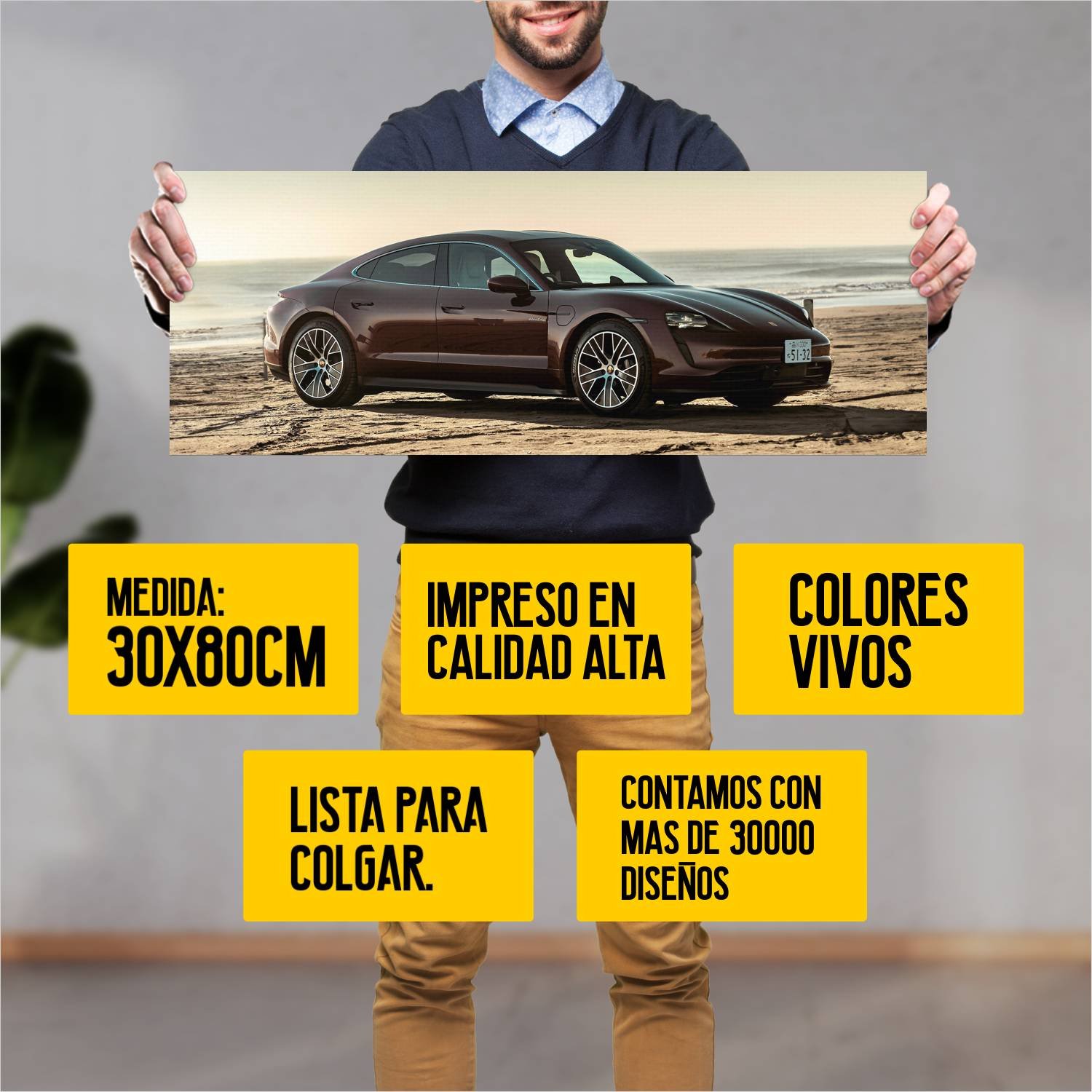 Descubre la elegancia y el estilo con nuestro cuadro impreso en canva full color de 30×80 cm. Este impresionante diseño de 2020 porsche taycan turbo s 432 es el complemento perfecto para cualquier espacio.