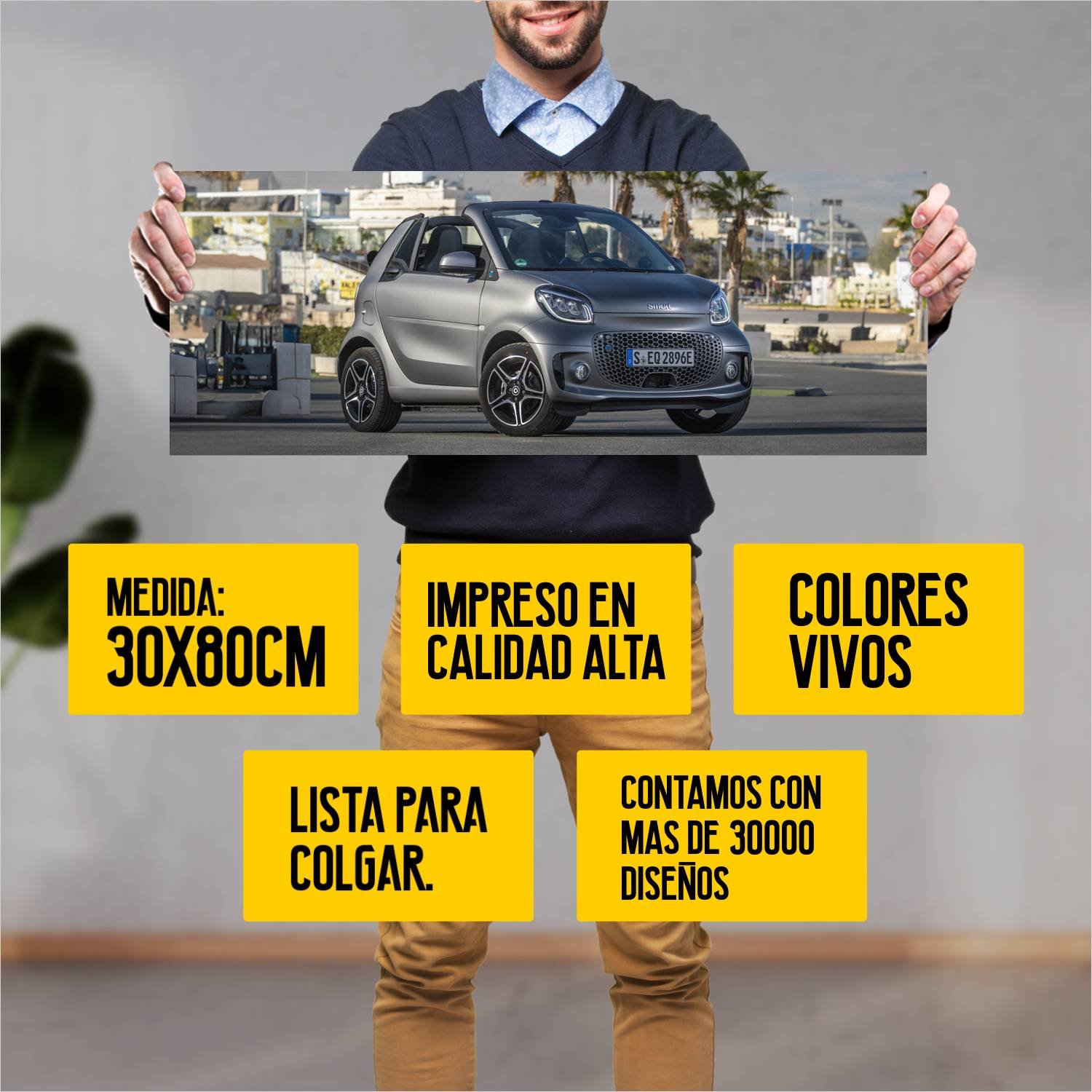 Descubre la elegancia y el estilo con nuestro cuadro impreso en canva full color de 30×80 cm. Este impresionante diseño de 2020 smart eq fortwo cabrio 175 es el complemento perfecto para cualquier espacio.