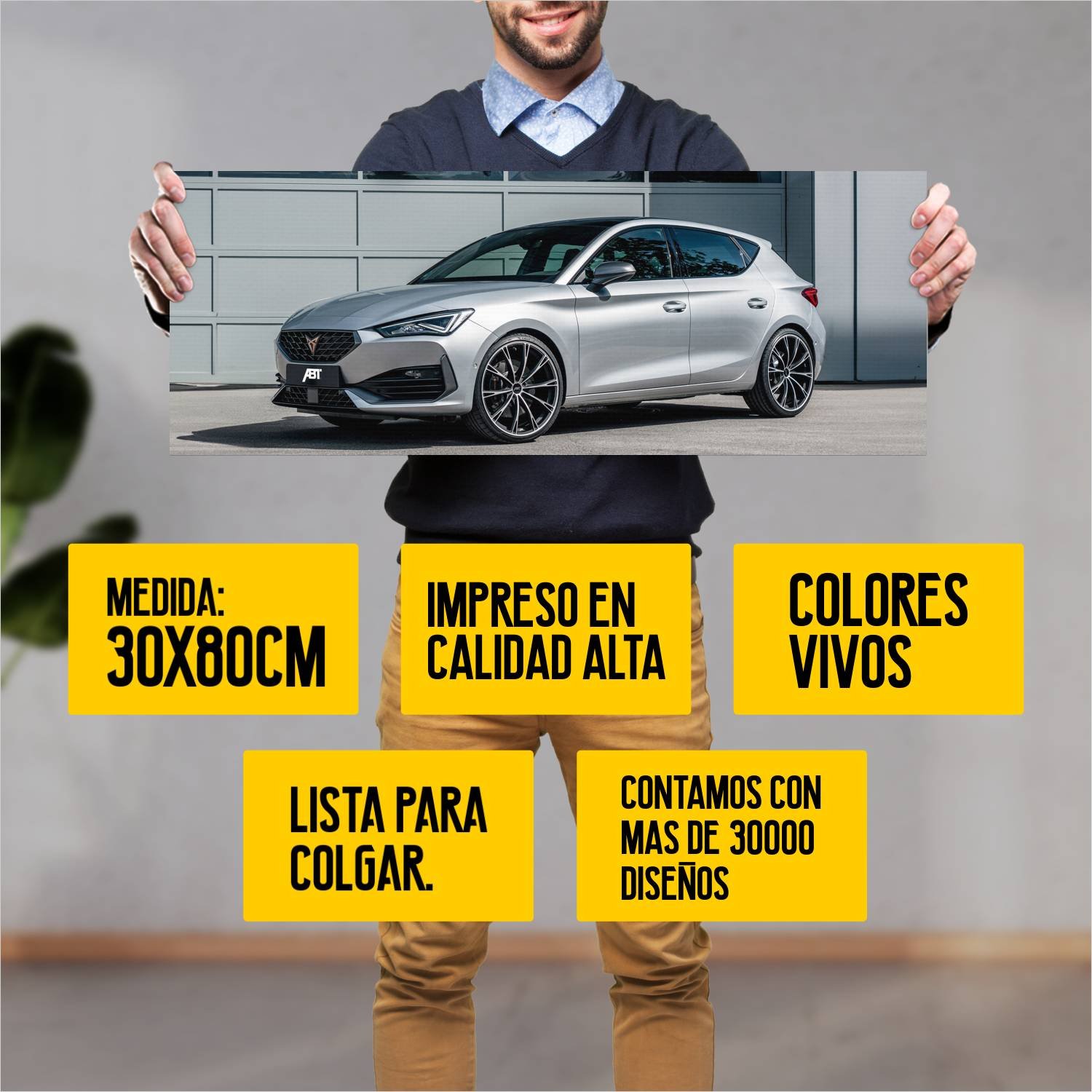 Descubre la elegancia y el estilo con nuestro cuadro impreso en canva full color de 30×80 cm. Este impresionante diseño de 2021 cupra leon by abt auto 401 es el complemento perfecto para cualquier espacio.