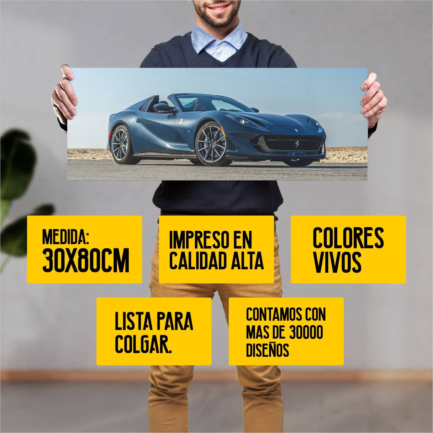 Descubre la elegancia y el estilo con nuestro cuadro impreso en canva full color de 30×80 cm. Este impresionante diseño de 2021 ferrari 812 gts us es el complemento perfecto para cualquier espacio.