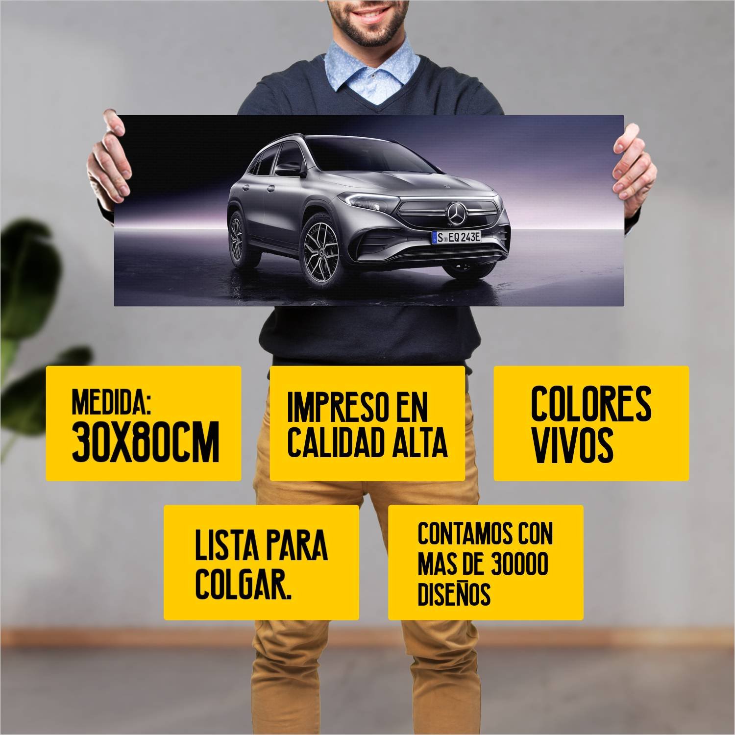 Descubre la elegancia y el estilo con nuestro cuadro impreso en canva full color de 30×80 cm. Este impresionante diseño de 2021 mercedes benz eqa amg l 523 es el complemento perfecto para cualquier espacio.