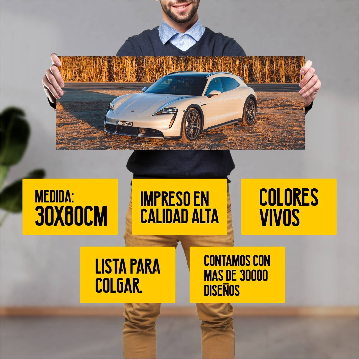 Descubre la elegancia y el estilo con nuestro cuadro impreso en canva full color de 30×80 cm. Este impresionante diseño de 2021 porsche taycan turbo cr 504 es el complemento perfecto para cualquier espacio.
