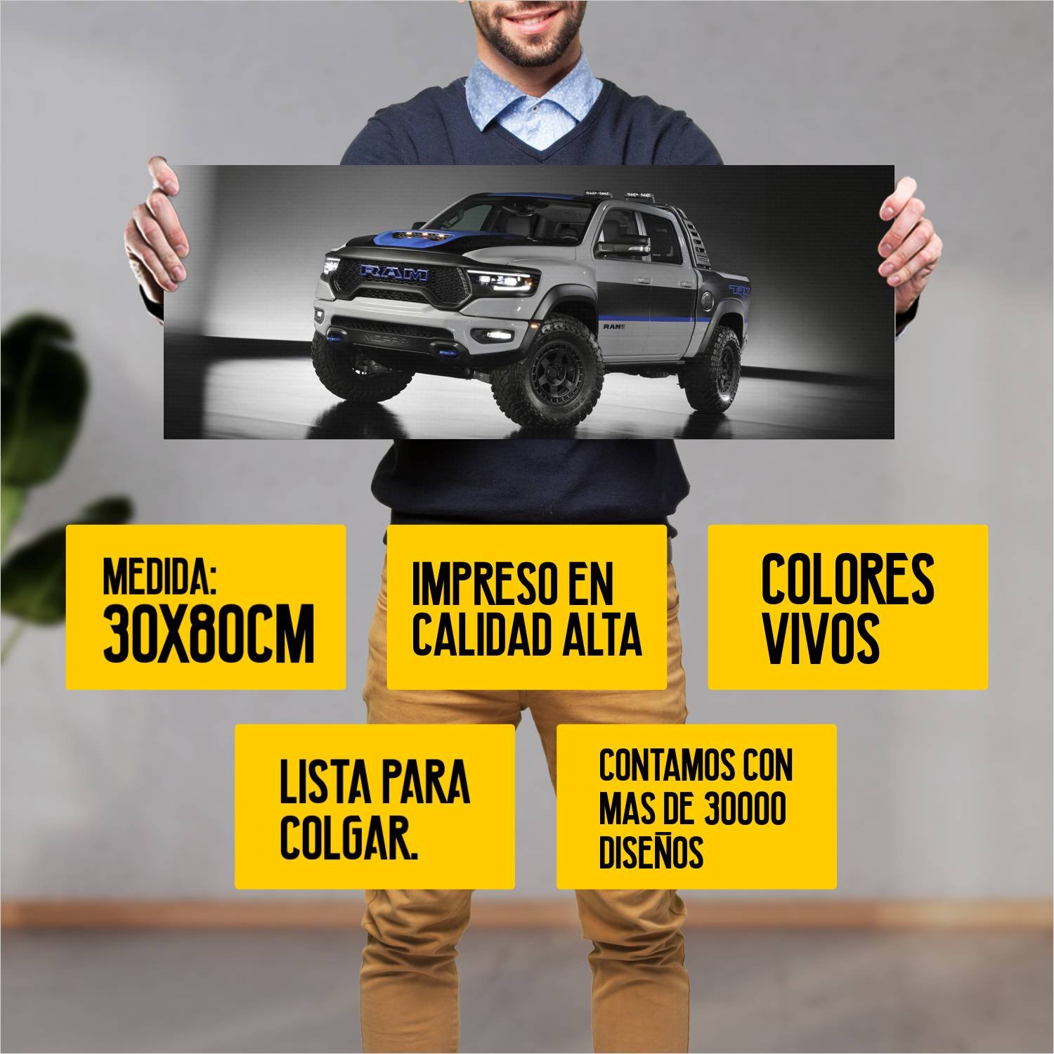 Descubre la elegancia y el estilo con nuestro cuadro impreso en canva full color de 30×80 cm. Este impresionante diseño de 2021 ram 1500 rex runner con 69 es el complemento perfecto para cualquier espacio.