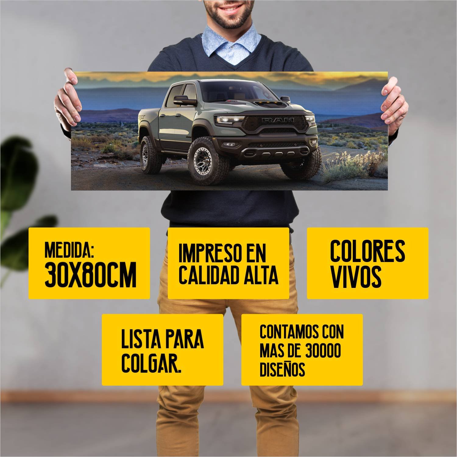 Descubre la elegancia y el estilo con nuestro cuadro impreso en canva full color de 30×80 cm. Este impresionante diseño de 2021 ram 1500 trx crew cab 1 73 es el complemento perfecto para cualquier espacio.
