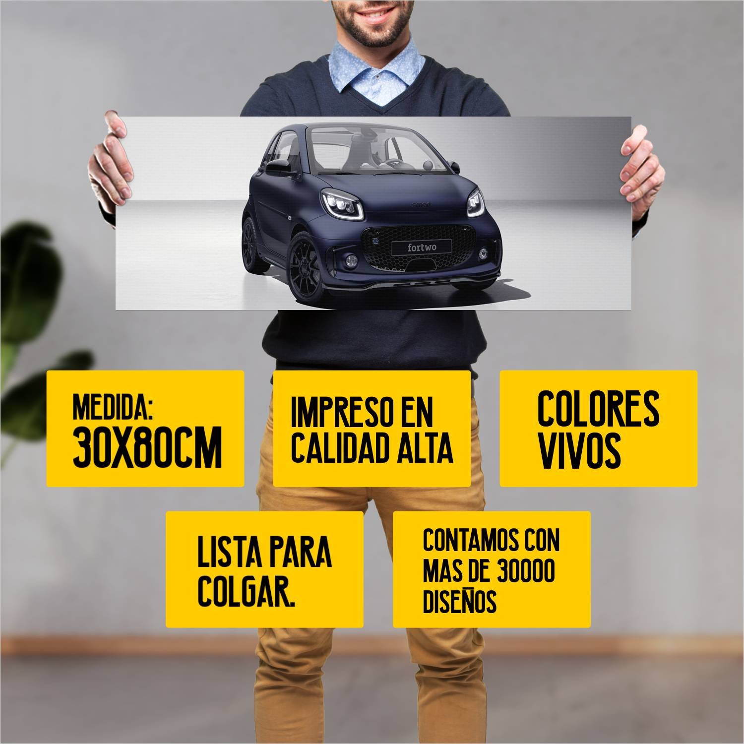 Descubre la elegancia y el estilo con nuestro cuadro impreso en canva full color de 30×80 cm. Este impresionante diseño de 2021 smart eq fortwo bluedaw 179 es el complemento perfecto para cualquier espacio.