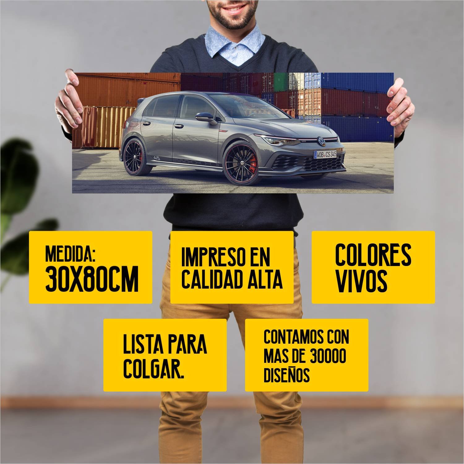 Descubre la elegancia y el estilo con nuestro cuadro impreso en canva full color de 30×80 cm. Este impresionante diseño de 2021 volkswagen golf gti clu 863 es el complemento perfecto para cualquier espacio.
