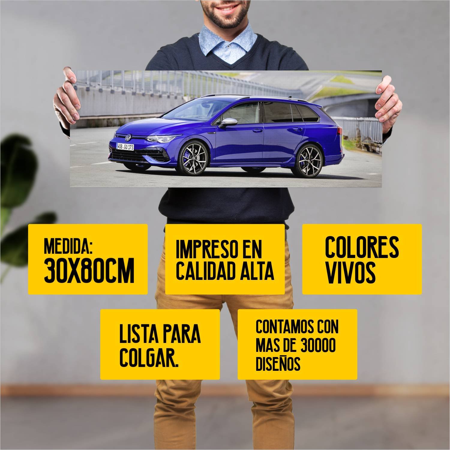 Descubre la elegancia y el estilo con nuestro cuadro impreso en canva full color de 30×80 cm. Este impresionante diseño de 2021 volkswagen golf r varia 875 es el complemento perfecto para cualquier espacio.