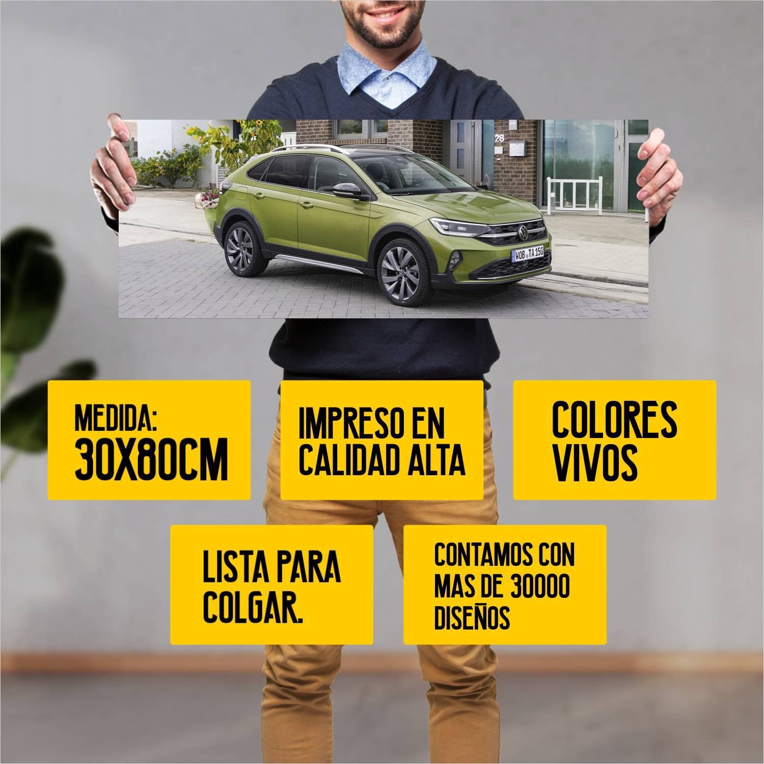 Descubre la elegancia y el estilo con nuestro cuadro impreso en canva full color de 30×80 cm. Este impresionante diseño de 2021 volkswagen taigo auto 919 es el complemento perfecto para cualquier espacio.