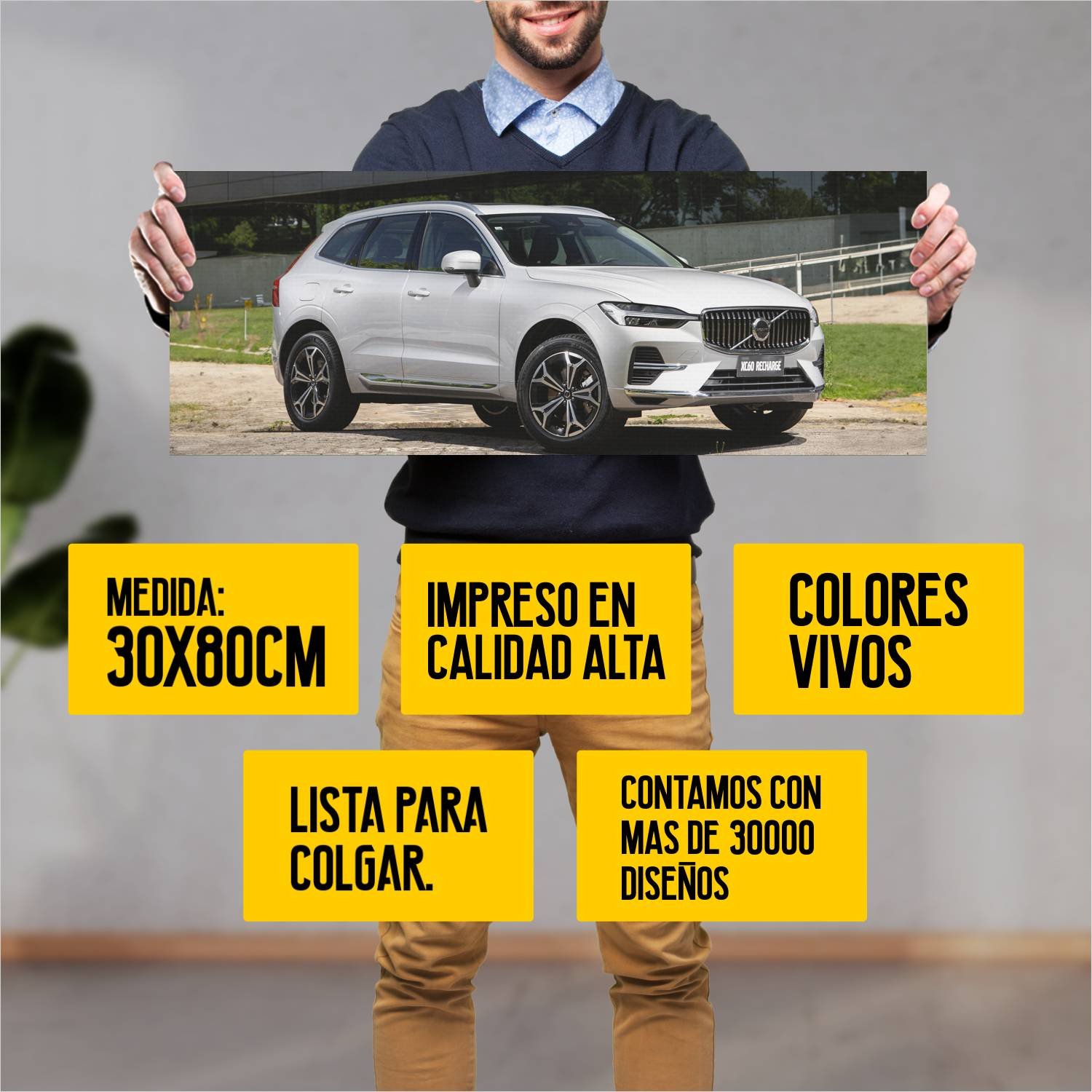 Descubre la elegancia y el estilo con nuestro cuadro impreso en canva full color de 30×80 cm. Este impresionante diseño de 2021 volvo xc60 recharge br 624 es el complemento perfecto para cualquier espacio.