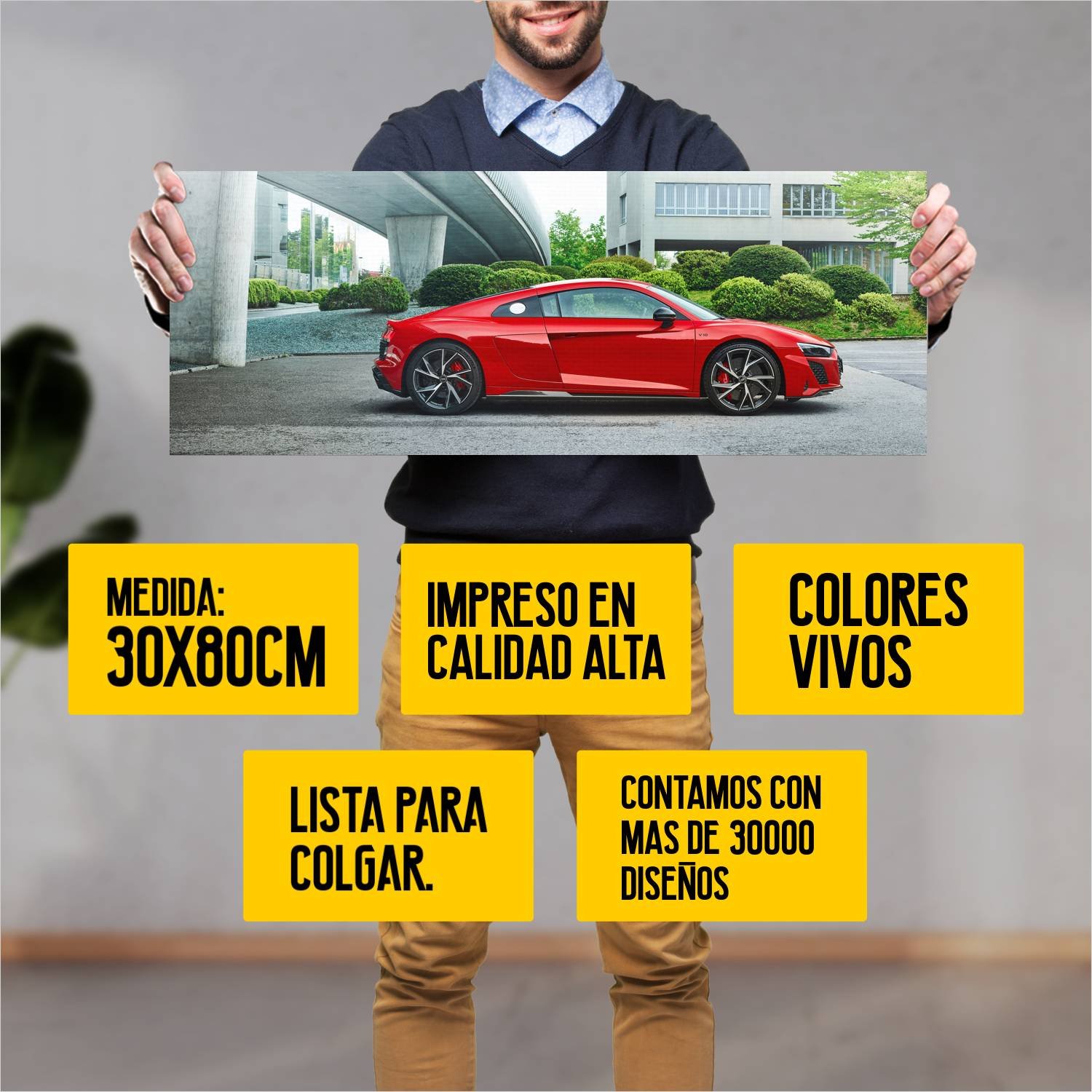 Descubre la elegancia y el estilo con nuestro cuadro impreso en canva full color de 30×80 cm. Este impresionante diseño de 2022 Audi R8 V10 Performance RW2 es el complemento perfecto para cualquier espacio.