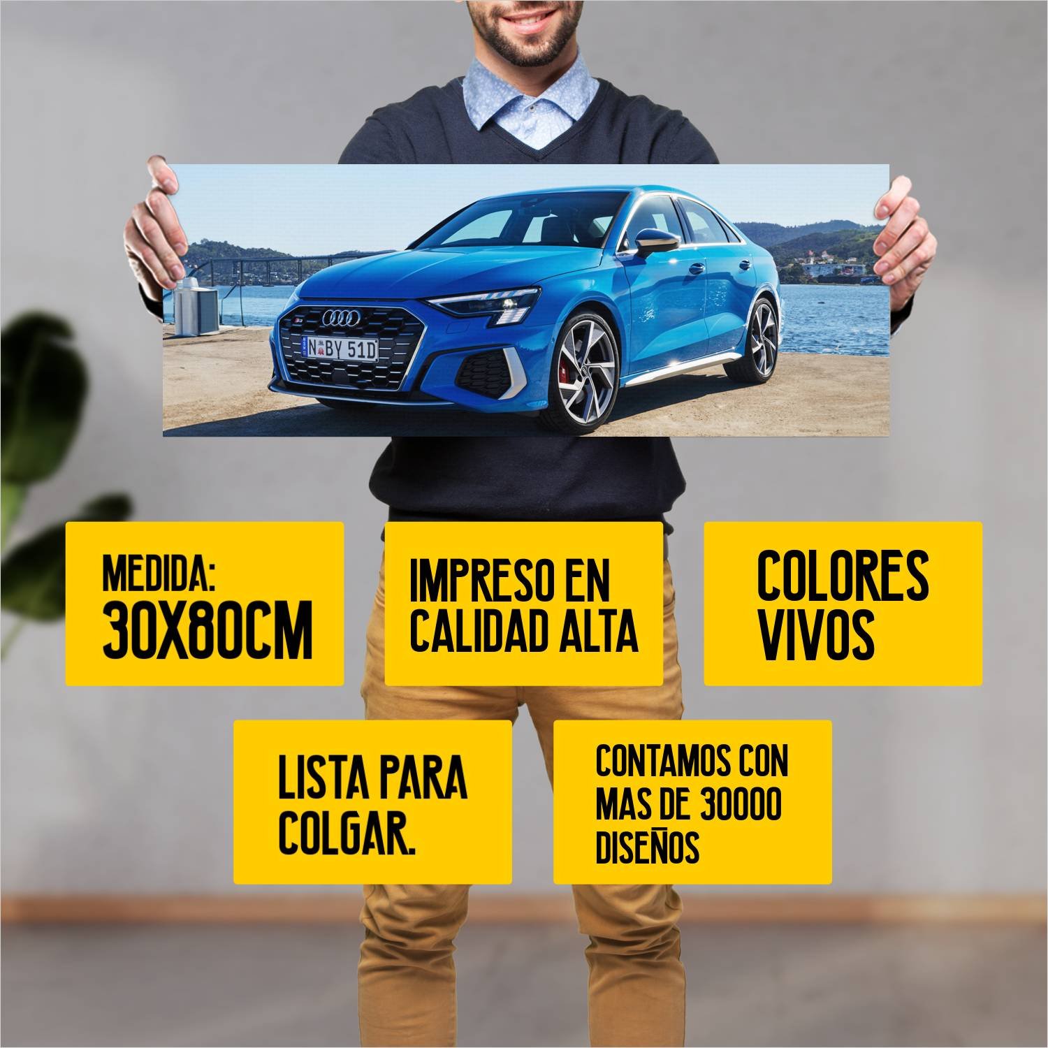 Descubre la elegancia y el estilo con nuestro cuadro impreso en canva full color de 30×80 cm. Este impresionante diseño de 2022 audi s3 sedan au auto 906 es el complemento perfecto para cualquier espacio.