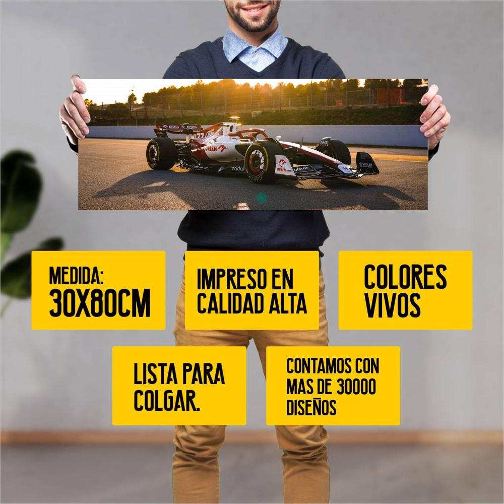 Descubre la elegancia y el estilo con nuestro cuadro impreso en canva full color de 30×80 cm. Este impresionante diseño de 2022 Formula1 Alfa Romeo C42 005 es el complemento perfecto para cualquier espacio.