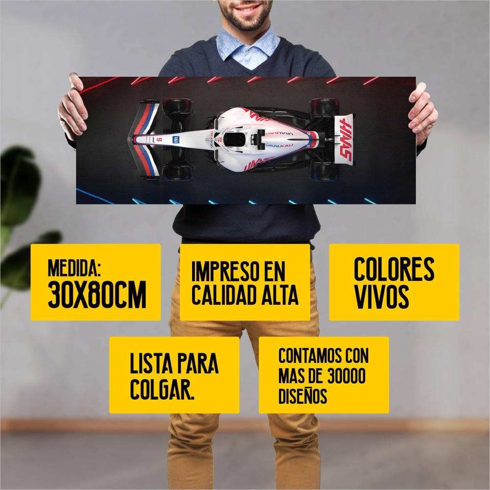 Descubre la elegancia y el estilo con nuestro cuadro impreso en canva full color de 30×80 cm. Este impresionante diseño de 2022 Formula1 Haas VF 22 004 es el complemento perfecto para cualquier espacio.