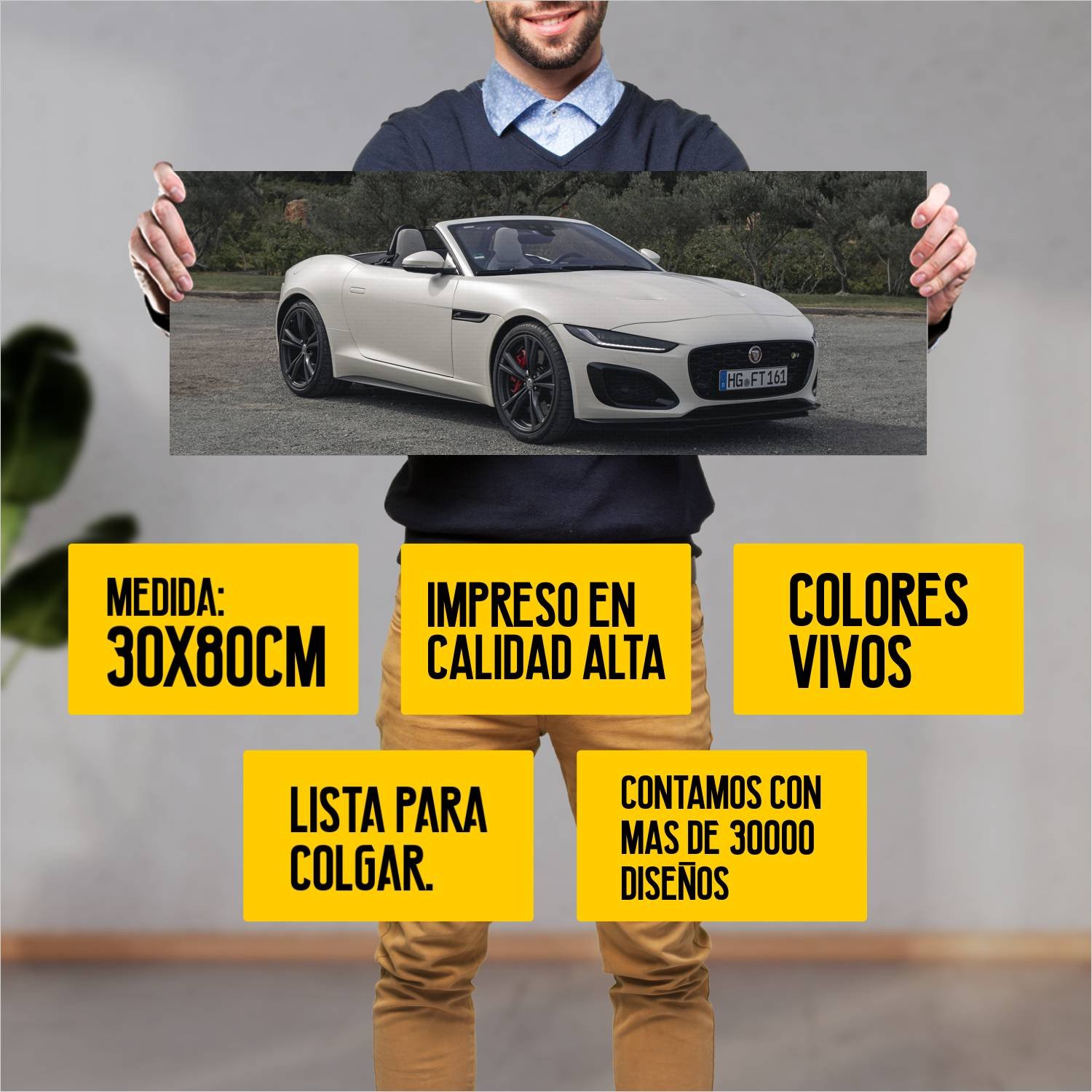 Descubre la elegancia y el estilo con nuestro cuadro impreso en canva full color de 30×80 cm. Este impresionante diseño de 2022 jaguar f type r convert 597 es el complemento perfecto para cualquier espacio.