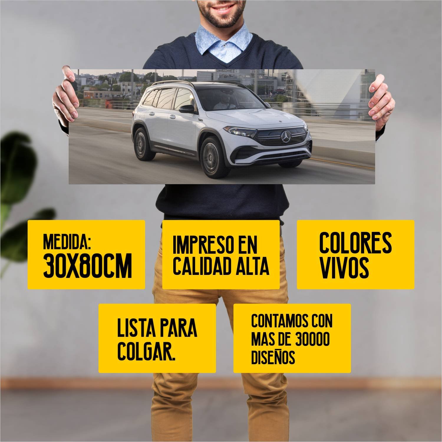 Descubre la elegancia y el estilo con nuestro cuadro impreso en canva full color de 30×80 cm. Este impresionante diseño de 2022 mercedes benz eqb amg l 639 es el complemento perfecto para cualquier espacio.