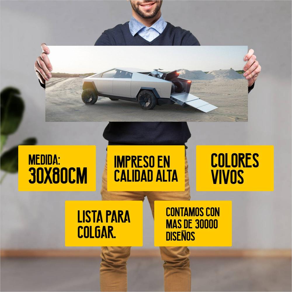 Descubre la elegancia y el estilo con nuestro cuadro impreso en canva full color de 30×80 cm. Este impresionante diseño de 2022 Tesla Cybertruck 004 es el complemento perfecto para cualquier espacio.