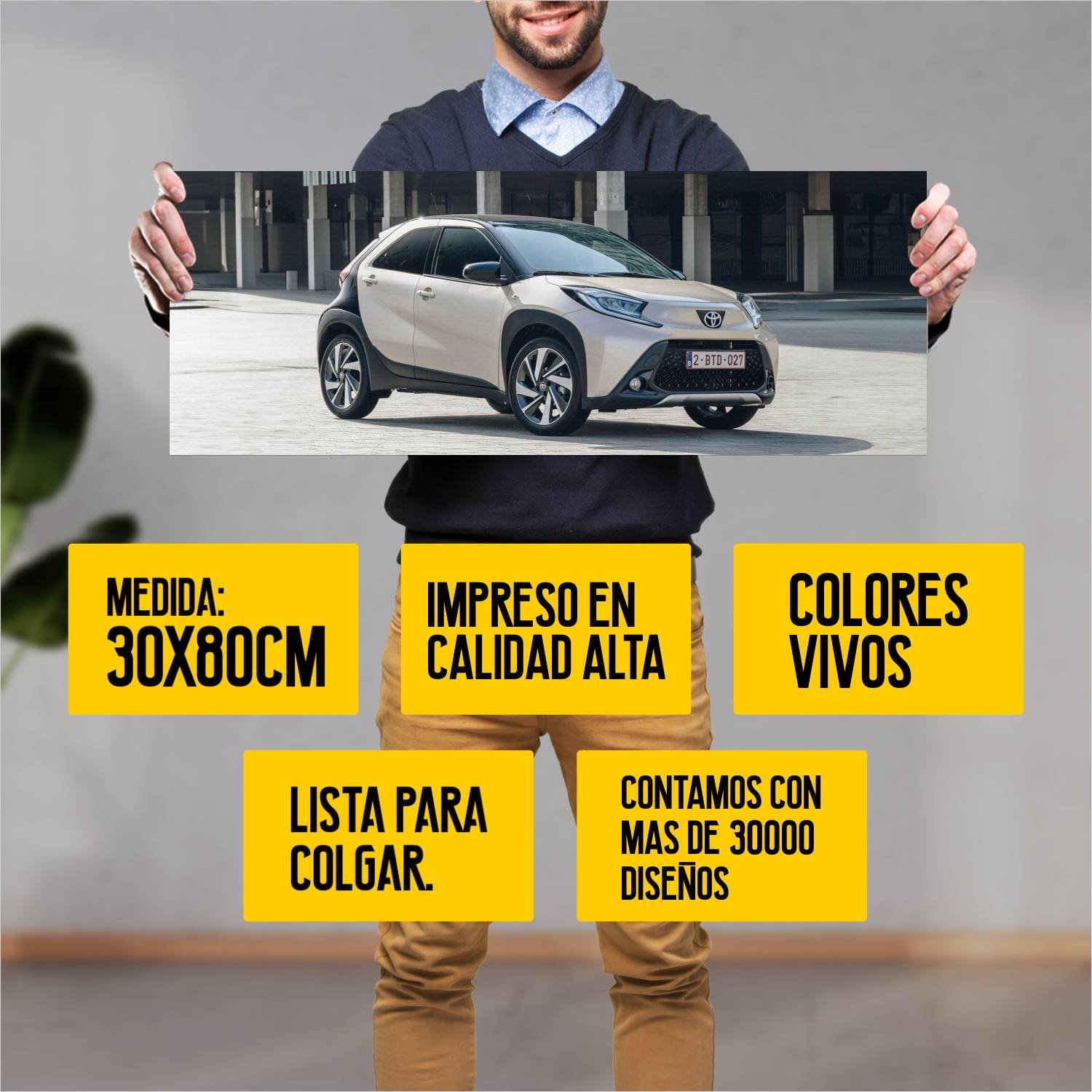 Descubre la elegancia y el estilo con nuestro cuadro impreso en canva full color de 30×80 cm. Este impresionante diseño de 2022 toyota aygo x auto 319 es el complemento perfecto para cualquier espacio.