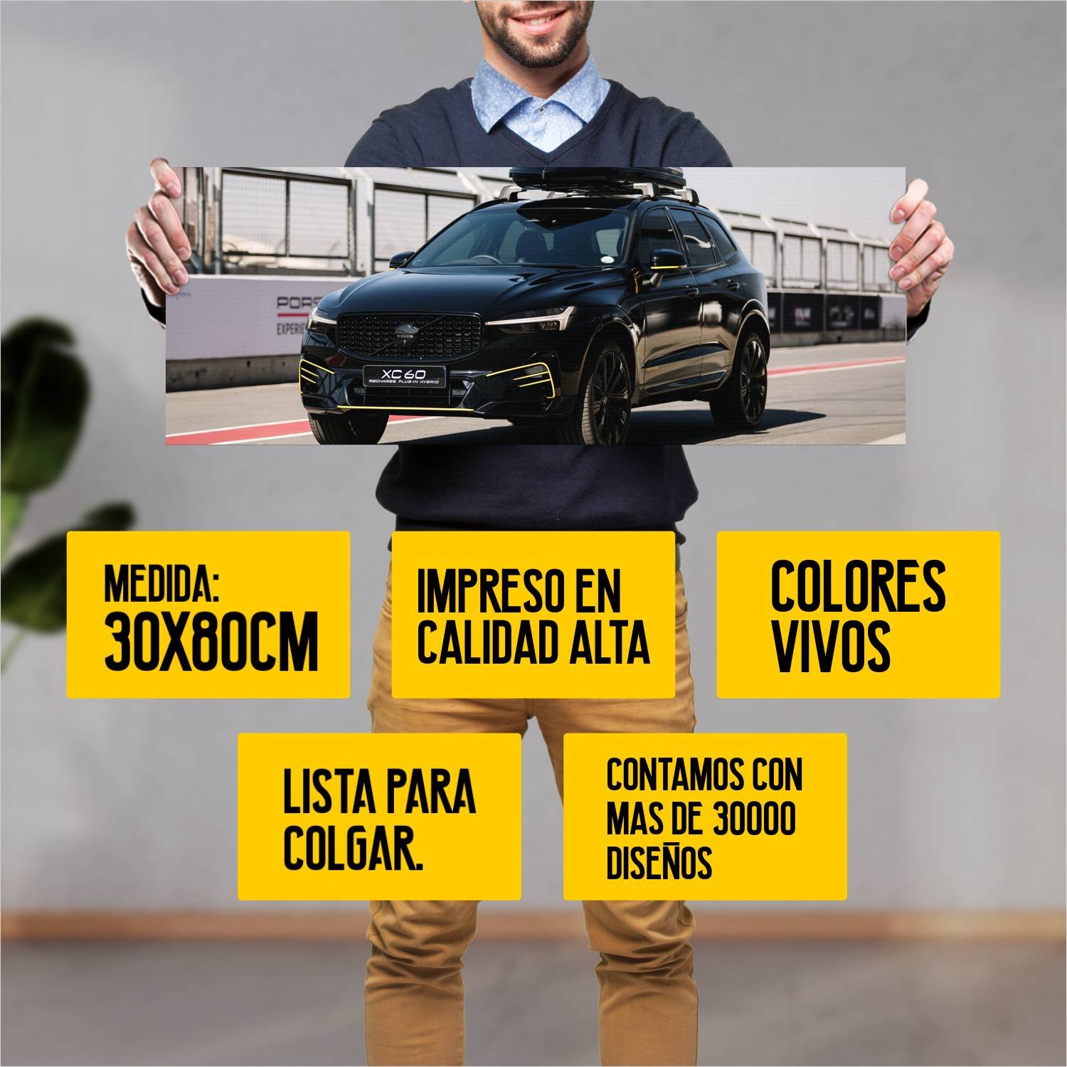 Descubre la elegancia y el estilo con nuestro cuadro impreso en canva full color de 30×80 cm. Este impresionante diseño de 2022 volvo xc60 recharge the 640 es el complemento perfecto para cualquier espacio.