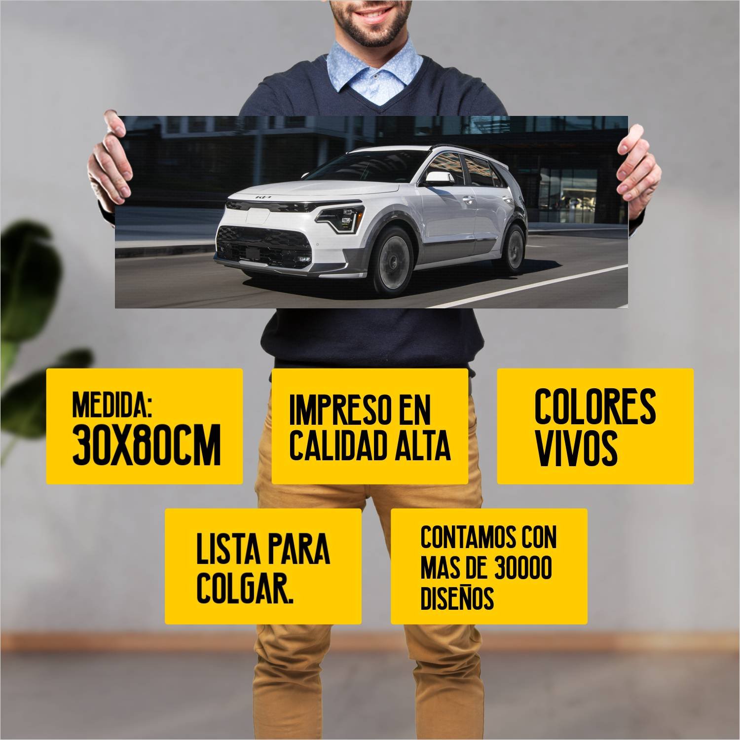 Descubre la elegancia y el estilo con nuestro cuadro impreso en canva full color de 30×80 cm. Este impresionante diseño de 2023 kia niro ev us auto 308 es el complemento perfecto para cualquier espacio.