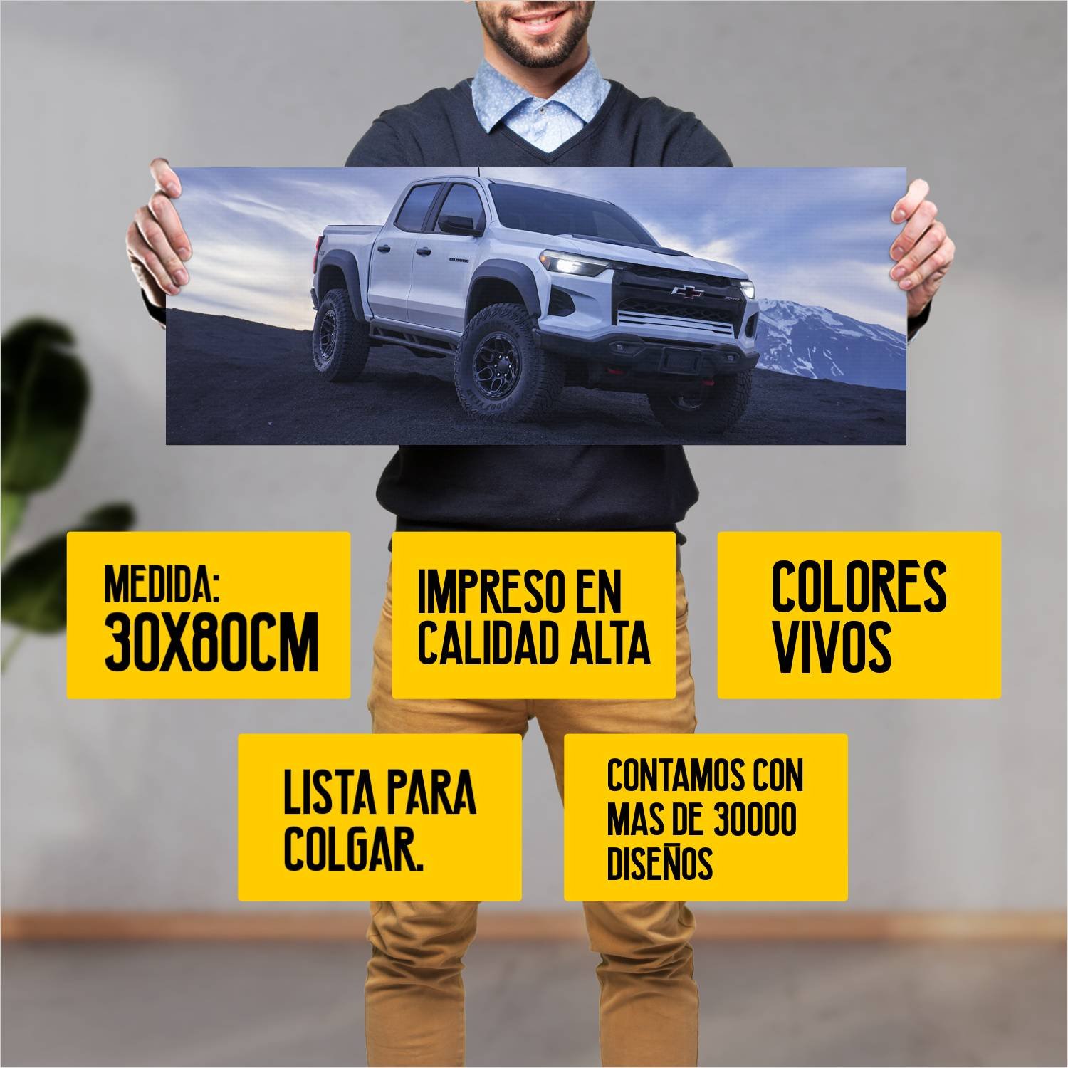 Descubre la elegancia y el estilo con nuestro cuadro impreso en canva full color de 30×80 cm. Este impresionante diseño de 2024 chevrolet colorado zr2 bison auto es el complemento perfecto para cualquier espacio.