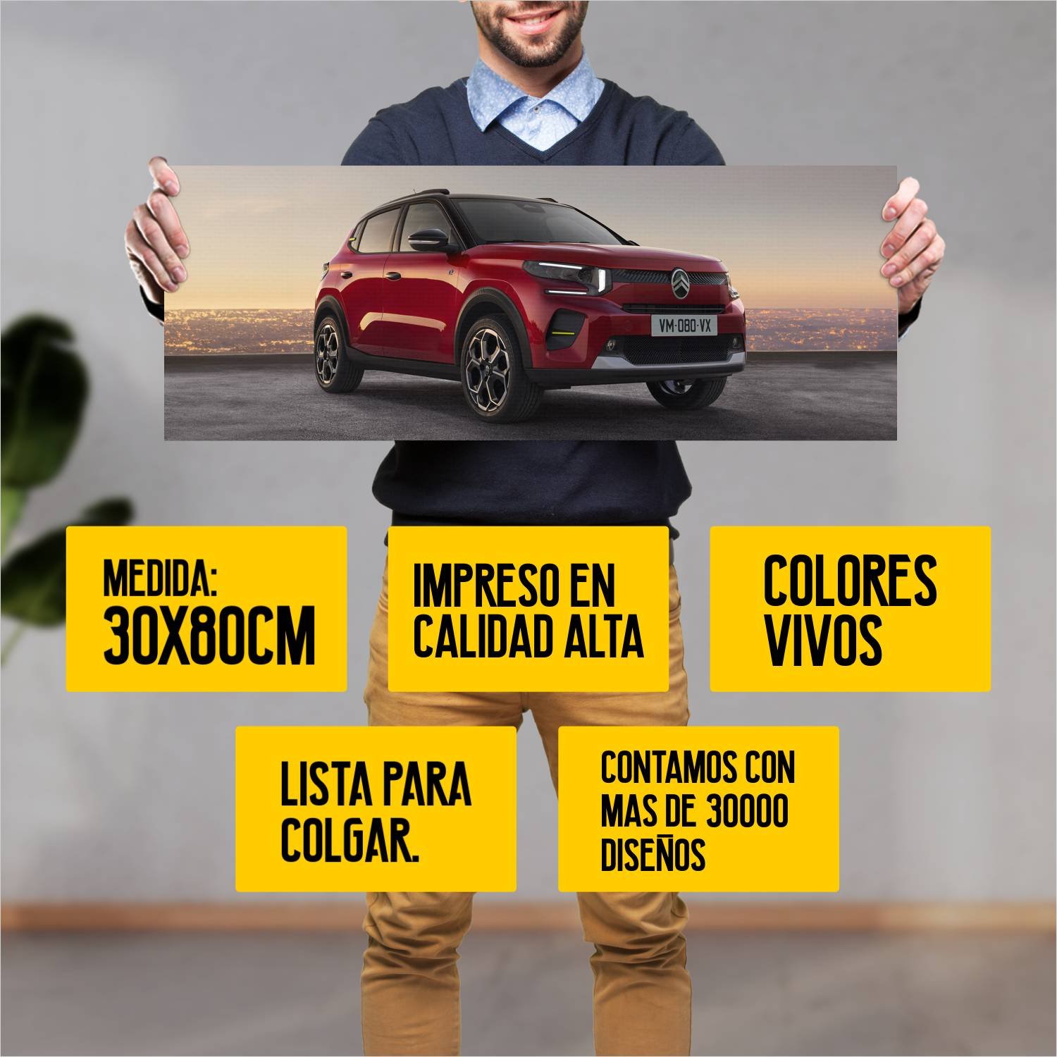 Descubre la elegancia y el estilo con nuestro cuadro impreso en canva full color de 30×80 cm. Este impresionante diseño de 2024 citroen e c3 auto 112 es el complemento perfecto para cualquier espacio.