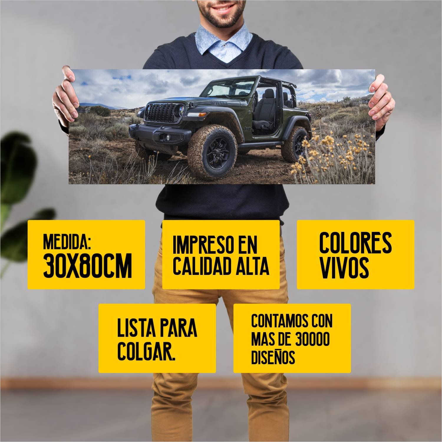 Descubre la elegancia y el estilo con nuestro cuadro impreso en canva full color de 30×80 cm. Este impresionante diseño de 2024 jeep wrangler willys 11 170 es el complemento perfecto para cualquier espacio.