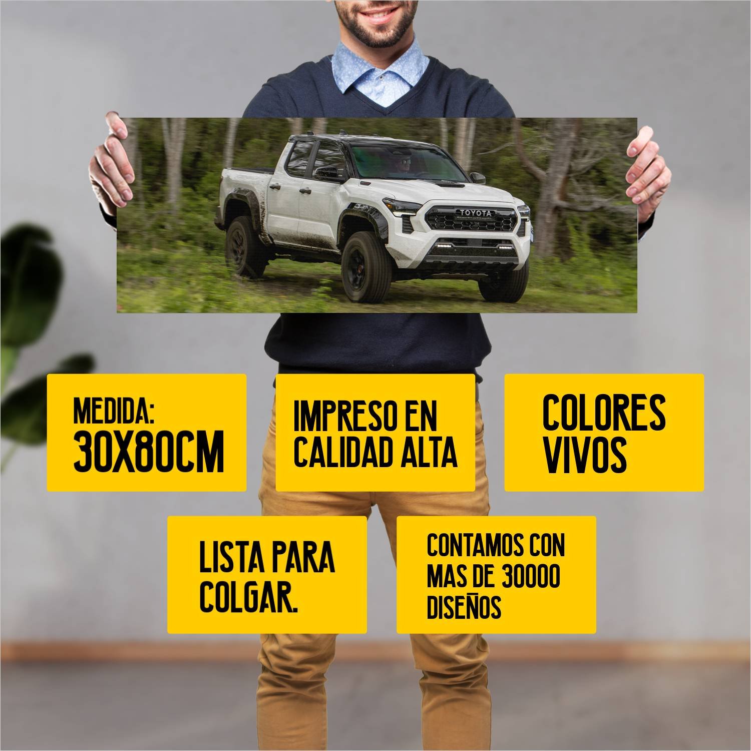 Descubre la elegancia y el estilo con nuestro cuadro impreso en canva full color de 30×80 cm. Este impresionante diseño de 2024 toyota tacoma trd pro d 442 es el complemento perfecto para cualquier espacio.