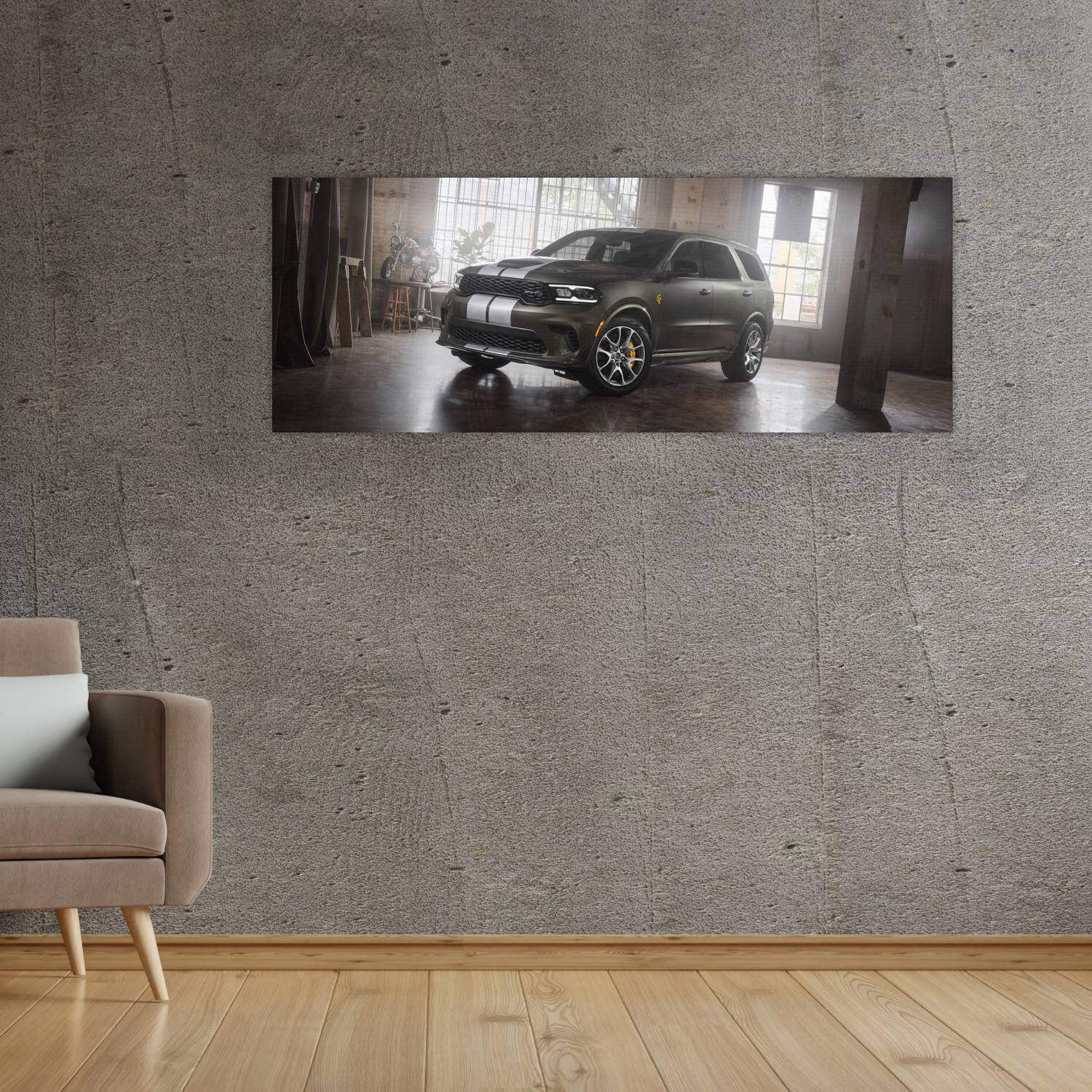Descubre la elegancia y el estilo con nuestro cuadro impreso en canva full color de 30×80 cm. Este impresionante diseño de 2026 Dodge Durango SRT Hellcat Jailbreak es el complemento perfecto para cualquier espacio.