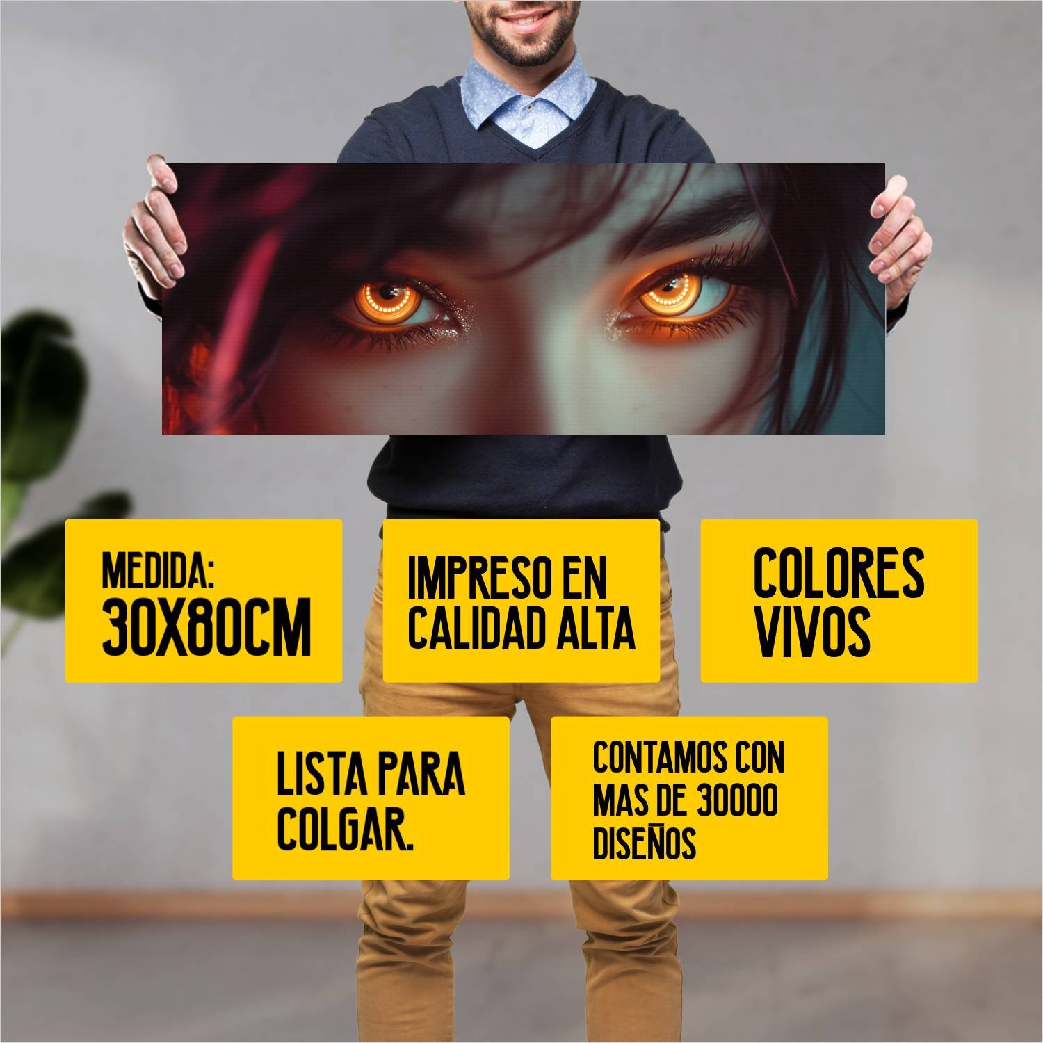 Ya viene listo para colgar, lo que significa que puedes disfrutar de tu nuevo arte en un instante. Con mas de 10 años de experiencia en el sector, ofrecemos productos de alta calidad que transformarán tus ambientes.