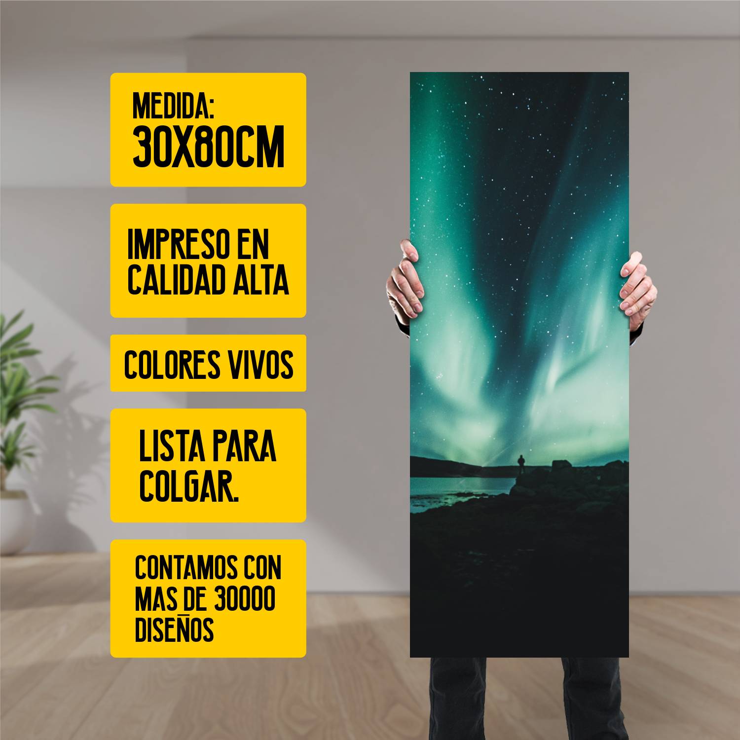 Descubre la elegancia y el estilo con nuestro cuadro impreso en canva full color de 30×80 cm. Este impresionante diseño de Aurora voreales es el complemento perfecto para cualquier espacio.