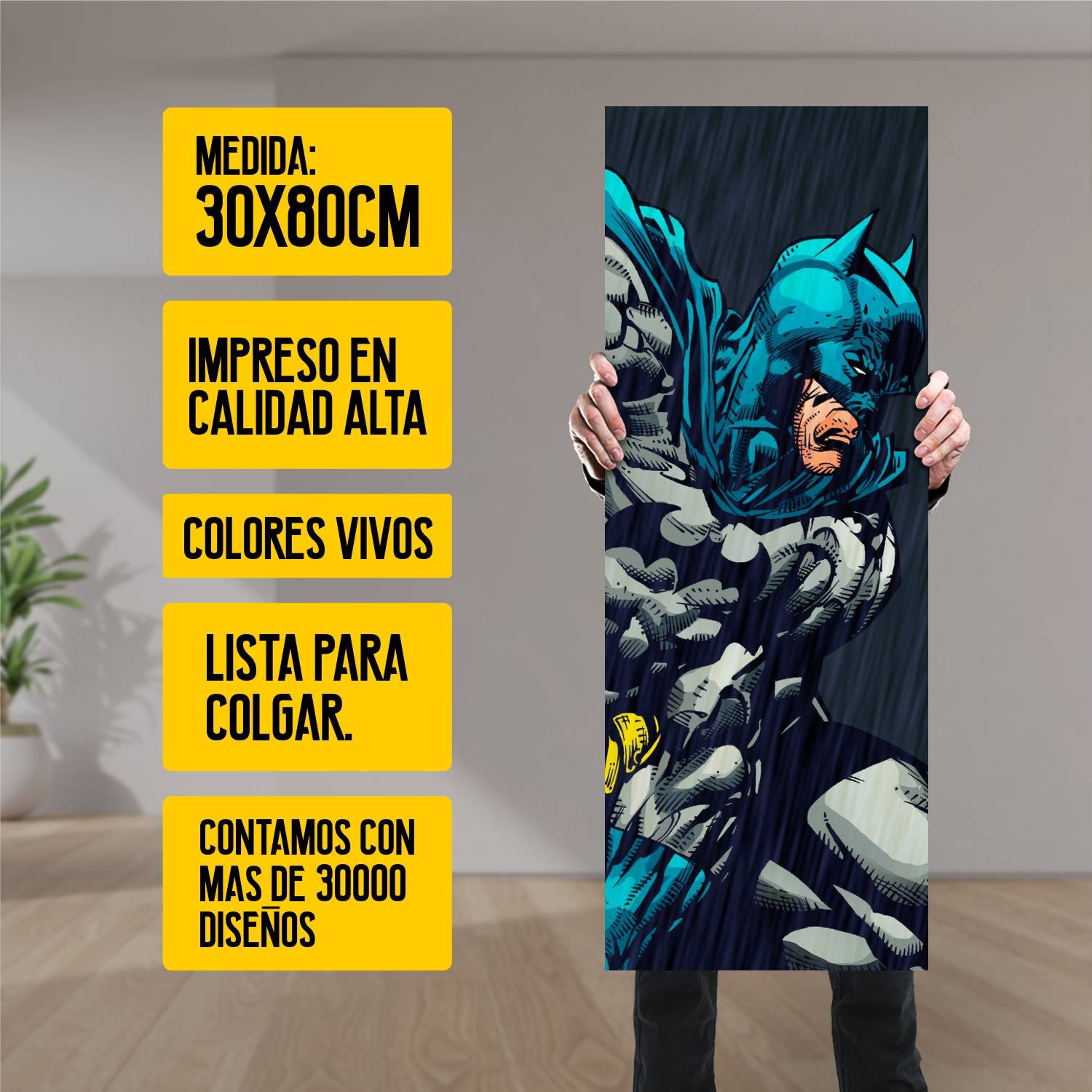 Descubre la elegancia y el estilo con nuestro cuadro impreso en canva full color de 30×80 cm. Este impresionante diseño de Batman Clasic Comics es el complemento perfecto para cualquier espacio.