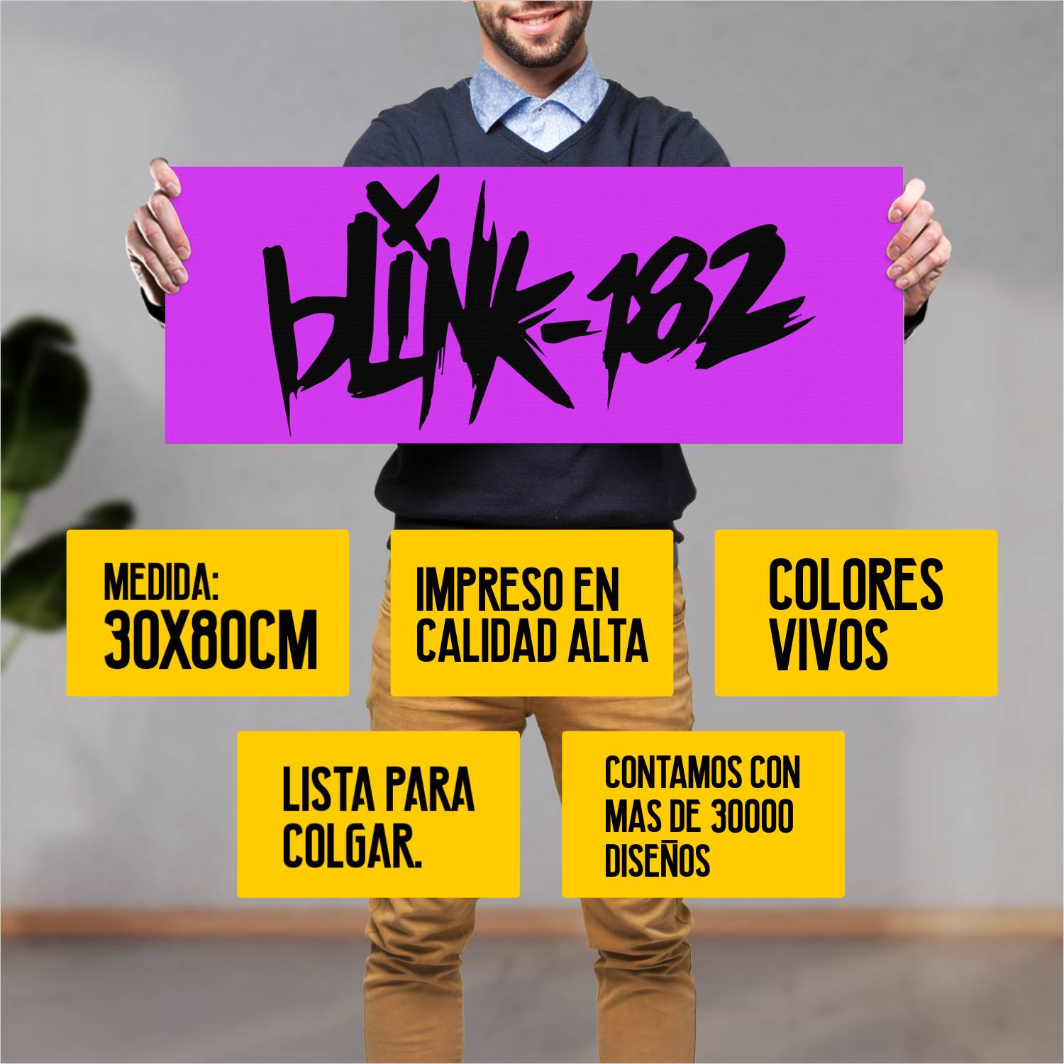 Descubre la elegancia y el estilo con nuestro cuadro impreso en canva full color de 30×80 cm. Este impresionante diseño de Blink 182 Logo Rosa es el complemento perfecto para cualquier espacio.