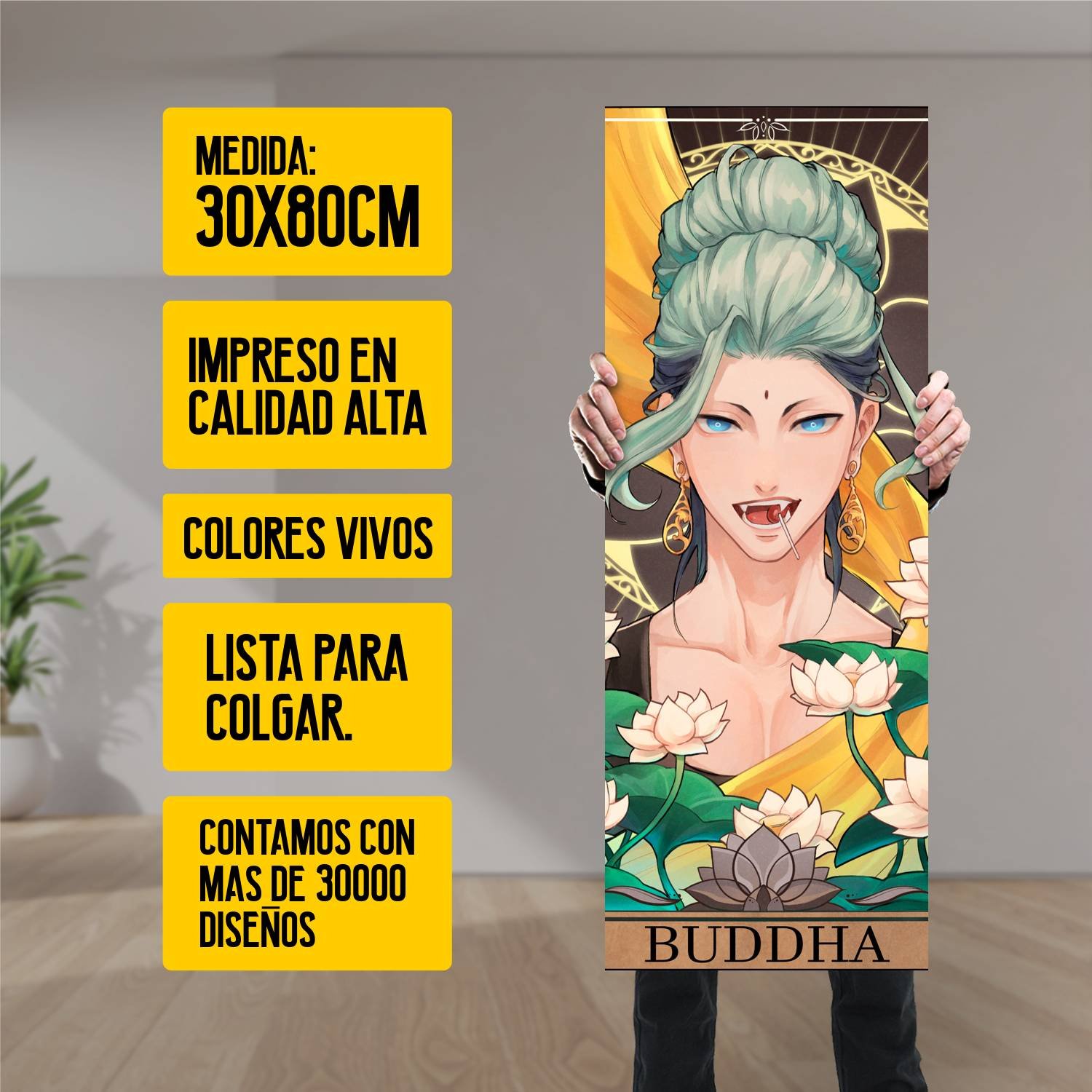 Descubre la elegancia y el estilo con nuestro cuadro impreso en canva full color de 30×80 cm. Este impresionante diseño de Buddha es el complemento perfecto para cualquier espacio.