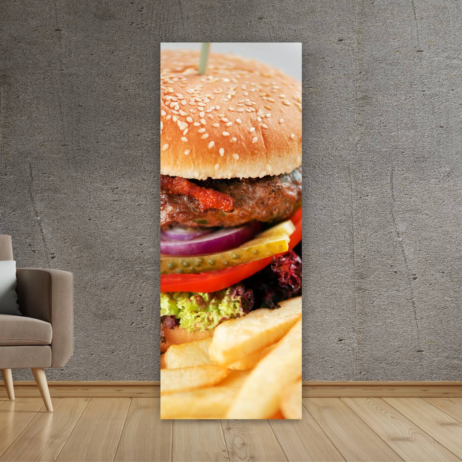 Descubre la elegancia y el estilo con nuestro cuadro impreso en canva full color de 30×80 cm. Este impresionante diseño de burger papas es el complemento perfecto para cualquier espacio.
