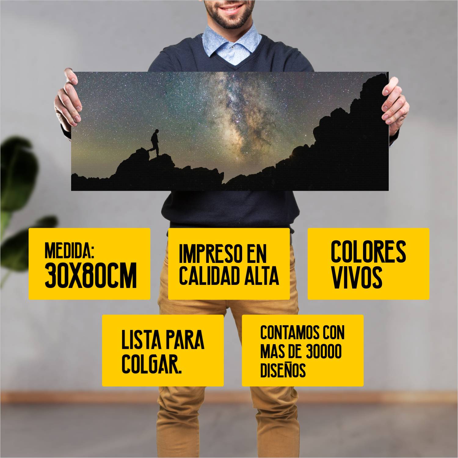 Descubre la elegancia y el estilo con nuestro cuadro impreso en canva full color de 30×80 cm. Este impresionante diseño de Caminante bajo estrellas es el complemento perfecto para cualquier espacio.