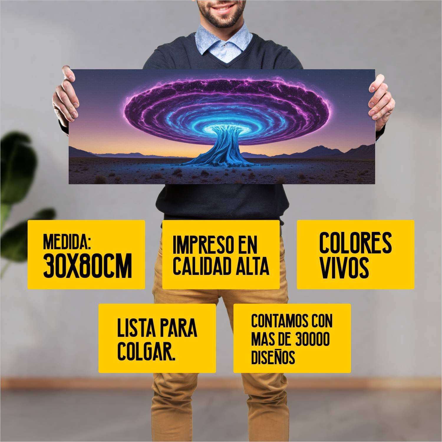 Ya viene listo para colgar, lo que significa que puedes disfrutar de tu nuevo arte en un instante. Con mas de 10 años de experiencia en el sector, ofrecemos productos de alta calidad que transformarán tus ambientes.