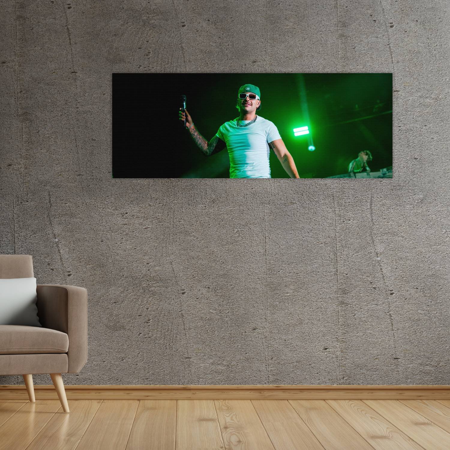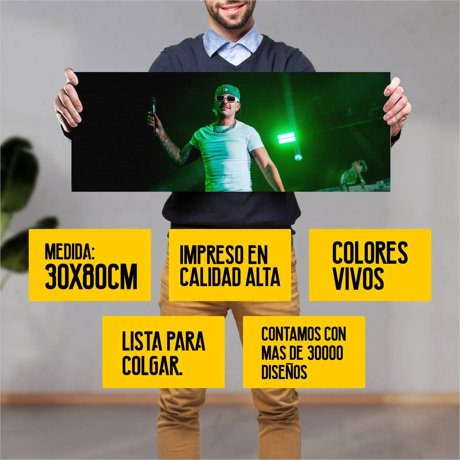 Descubre la elegancia y el estilo con nuestro cuadro impreso en canva full color de 30×80 cm. Este impresionante diseño de feid cantando es el complemento perfecto para cualquier espacio.