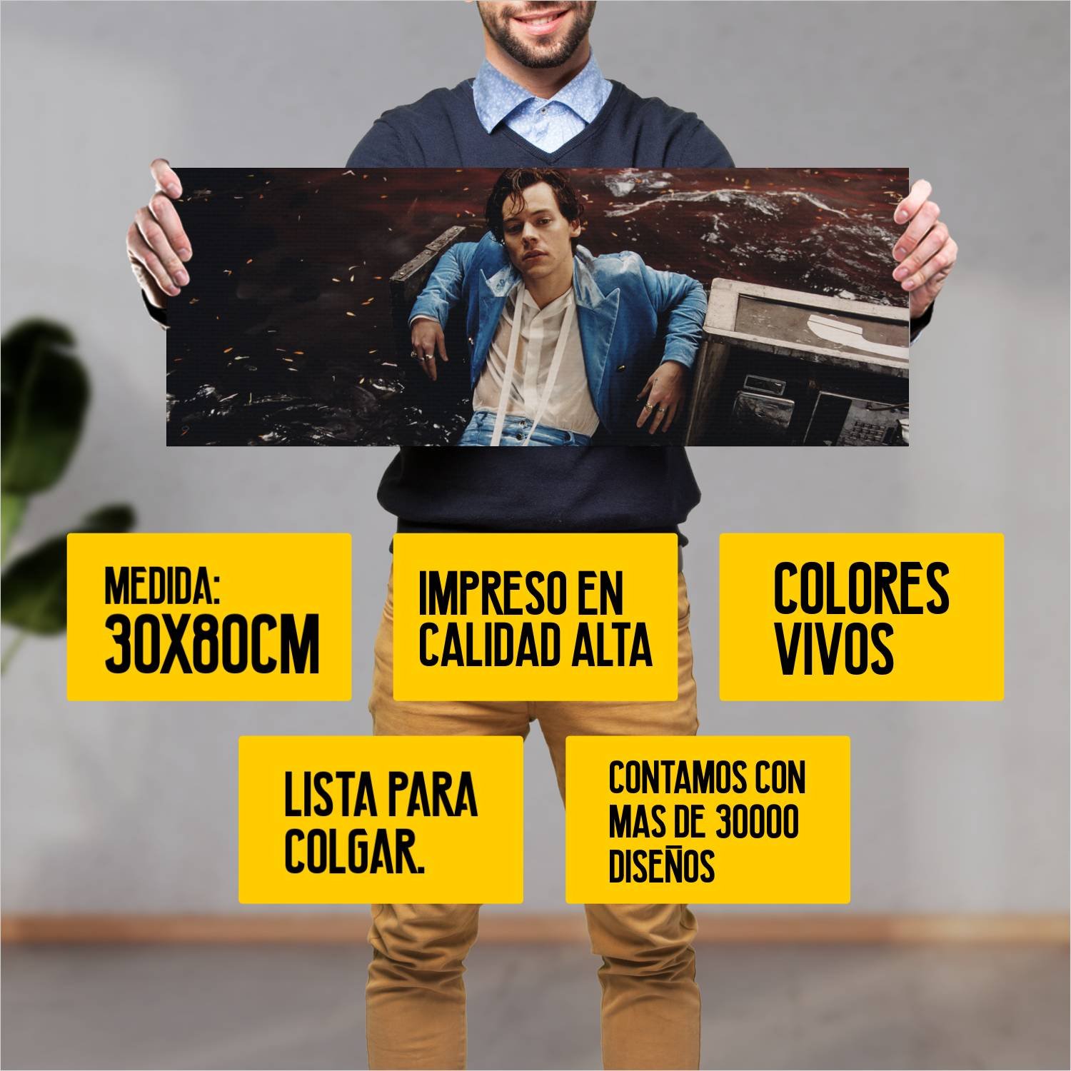Descubre la elegancia y el estilo con nuestro cuadro impreso en canva full color de 30×80 cm. Este impresionante diseño de harry styles en falling es el complemento perfecto para cualquier espacio.