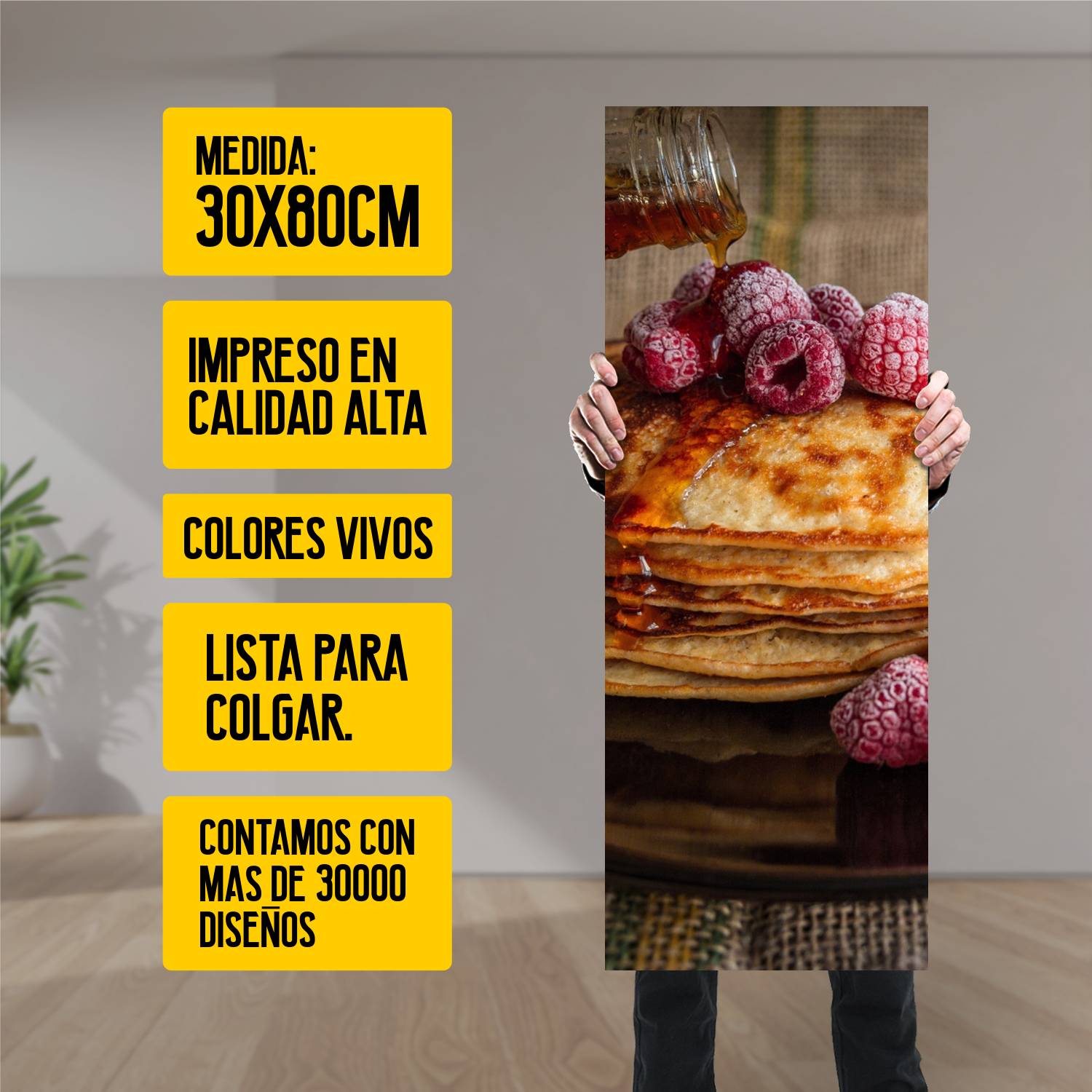 Descubre la elegancia y el estilo con nuestro cuadro impreso en canva full color de 30×80 cm. Este impresionante diseño de hotcake mora es el complemento perfecto para cualquier espacio.