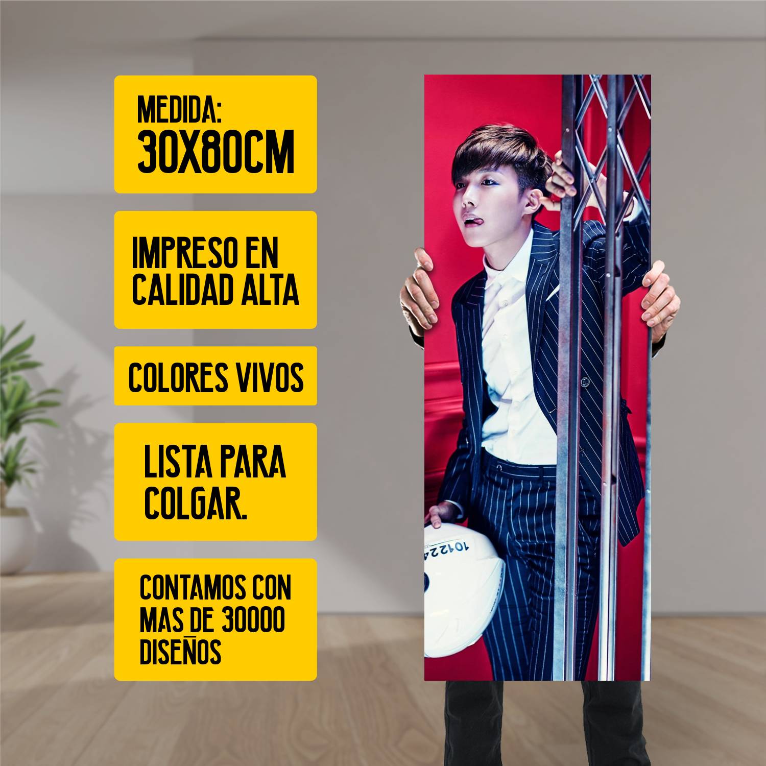 Descubre la elegancia y el estilo con nuestro cuadro impreso en canva full color de 30×80 cm. Este impresionante diseño de J Hope BT 021 es el complemento perfecto para cualquier espacio.