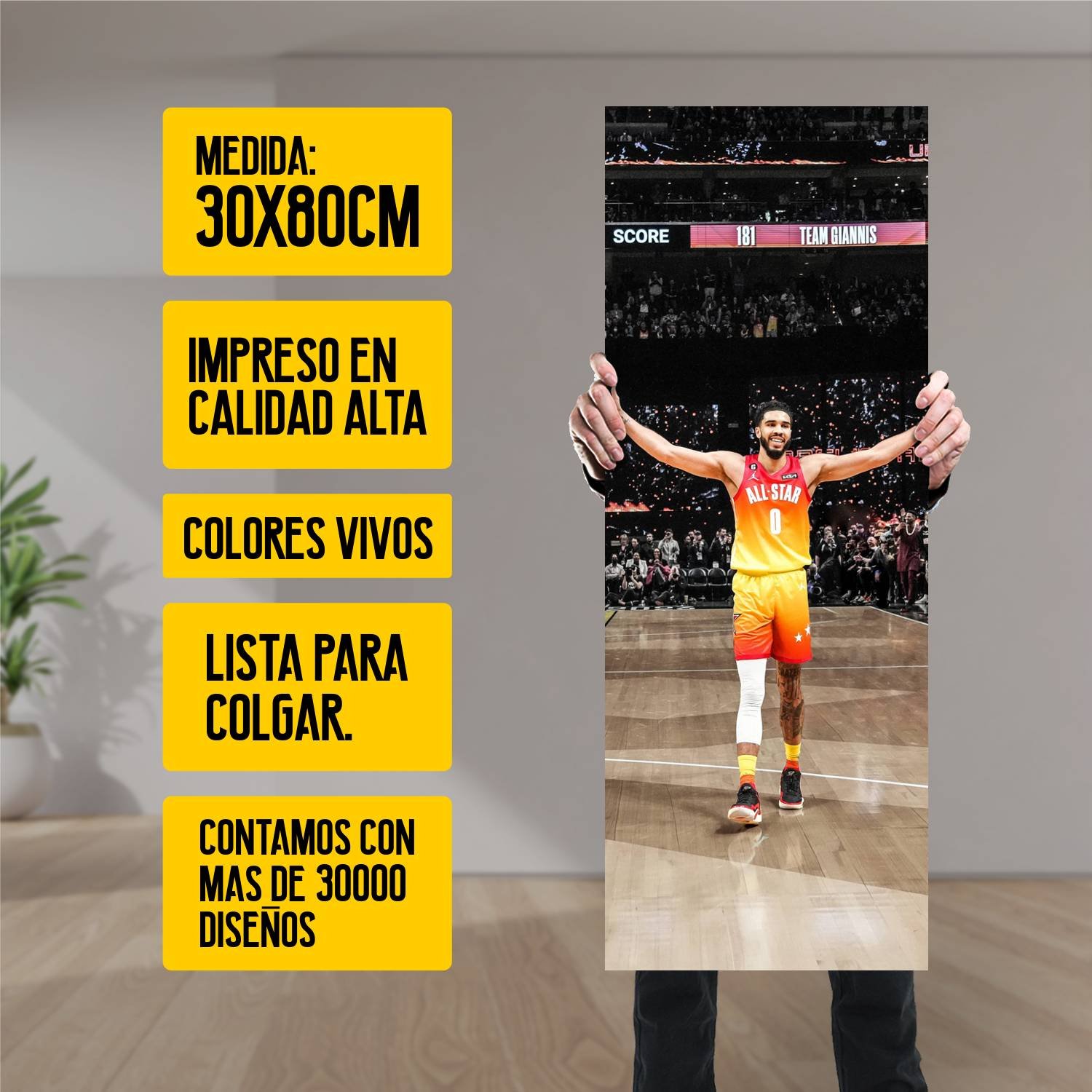 Descubre la elegancia y el estilo con nuestro cuadro impreso en canva full color de 30×80 cm. Este impresionante diseño de jayson tatum allstar es el complemento perfecto para cualquier espacio.