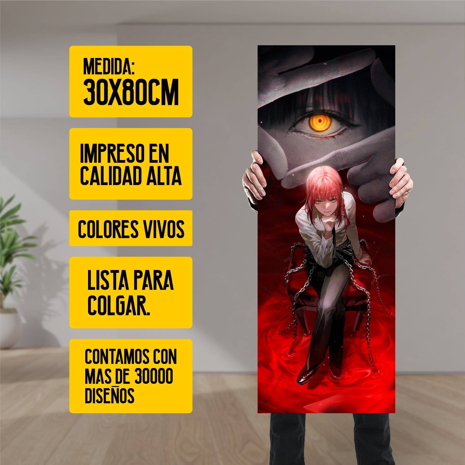 Descubre la elegancia y el estilo con nuestro cuadro impreso en canva full color de 30×80 cm. Este impresionante diseño de Makima Demonio es el complemento perfecto para cualquier espacio.