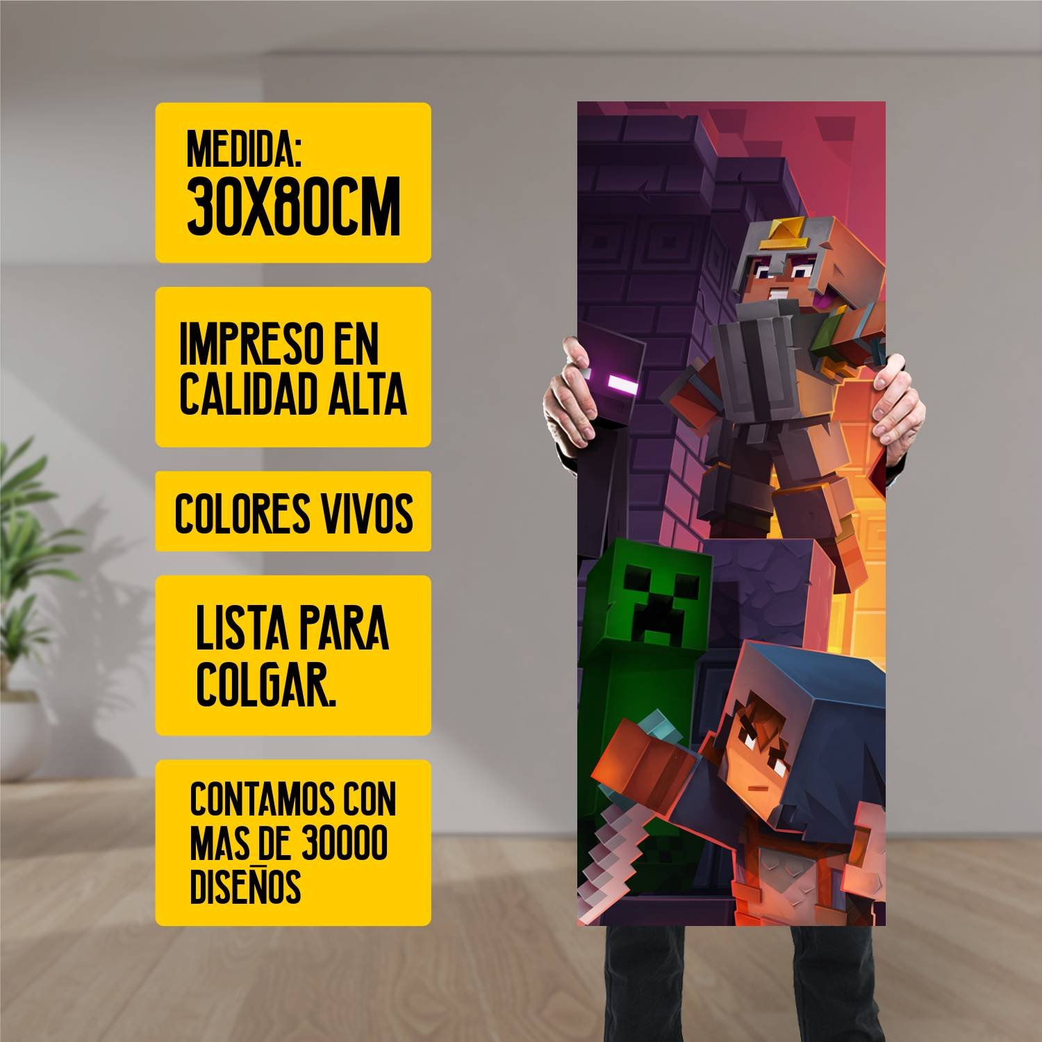 Descubre la elegancia y el estilo con nuestro cuadro impreso en canva full color de 30×80 cm. Este impresionante diseño de Minecraft batalla es el complemento perfecto para cualquier espacio.