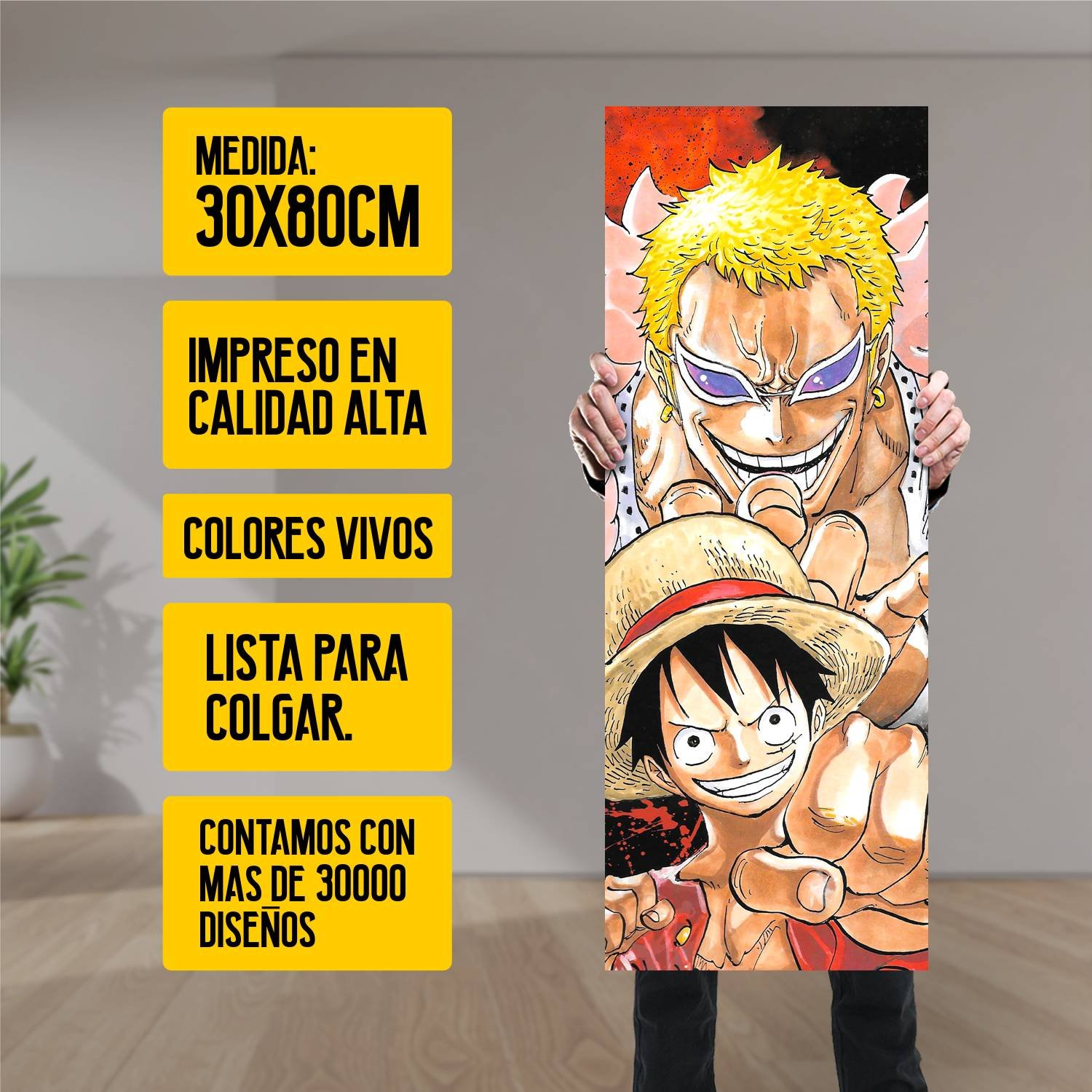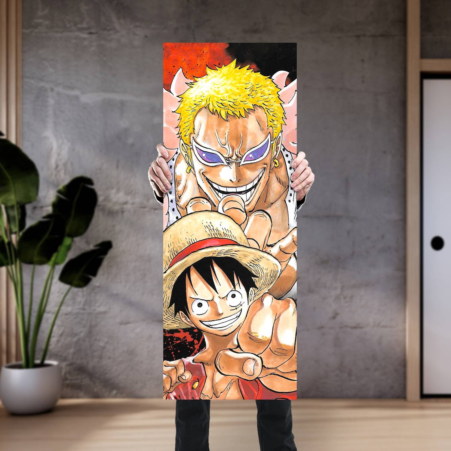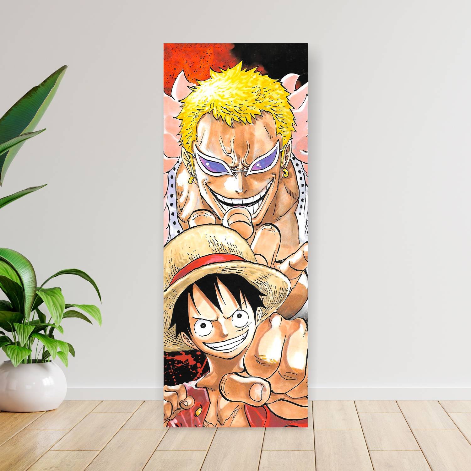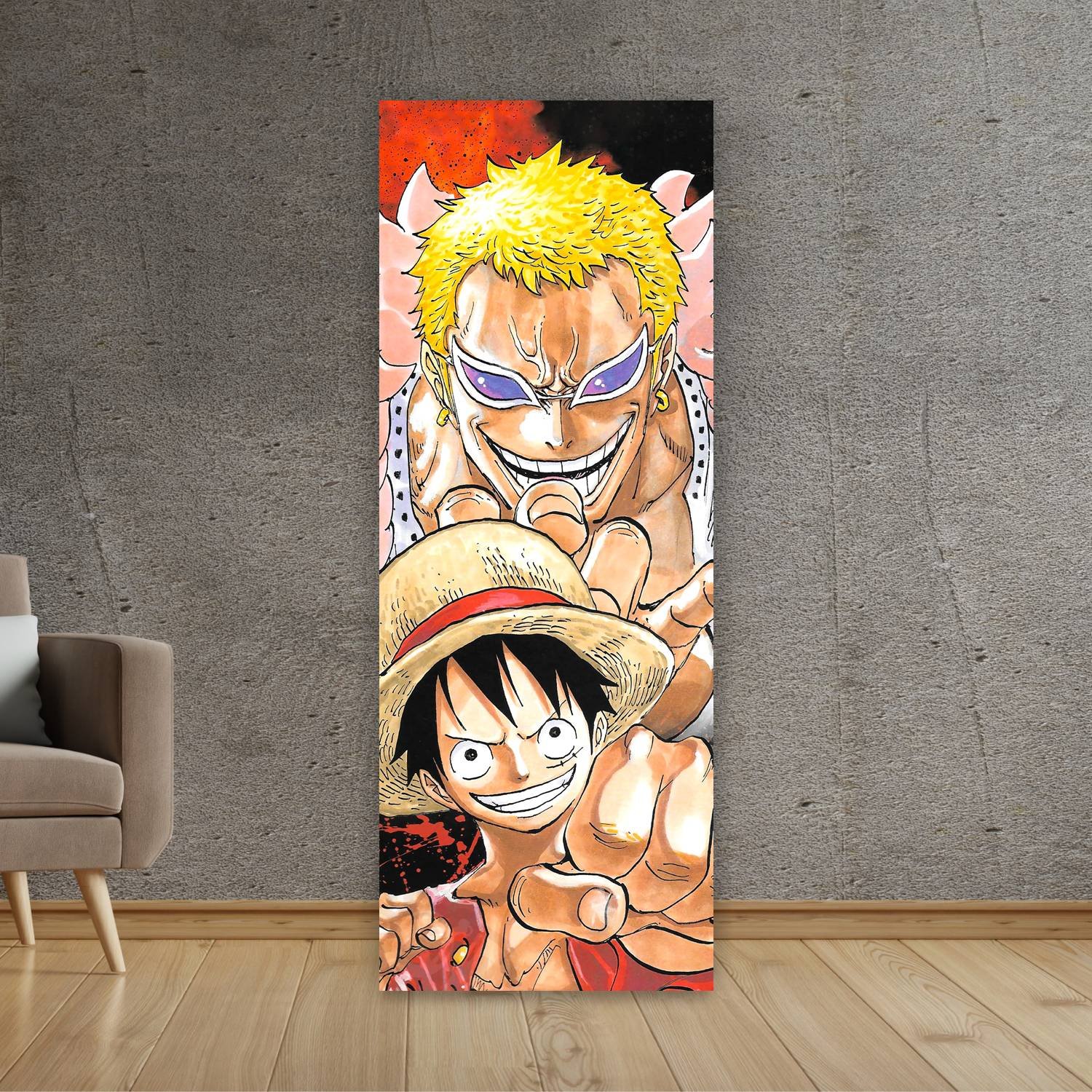 Descubre la elegancia y el estilo con nuestro cuadro impreso en canva full color de 30×80 cm. Este impresionante diseño de Monkey D. Luffy donquixote doflamingo es el complemento perfecto para cualquier espacio.
