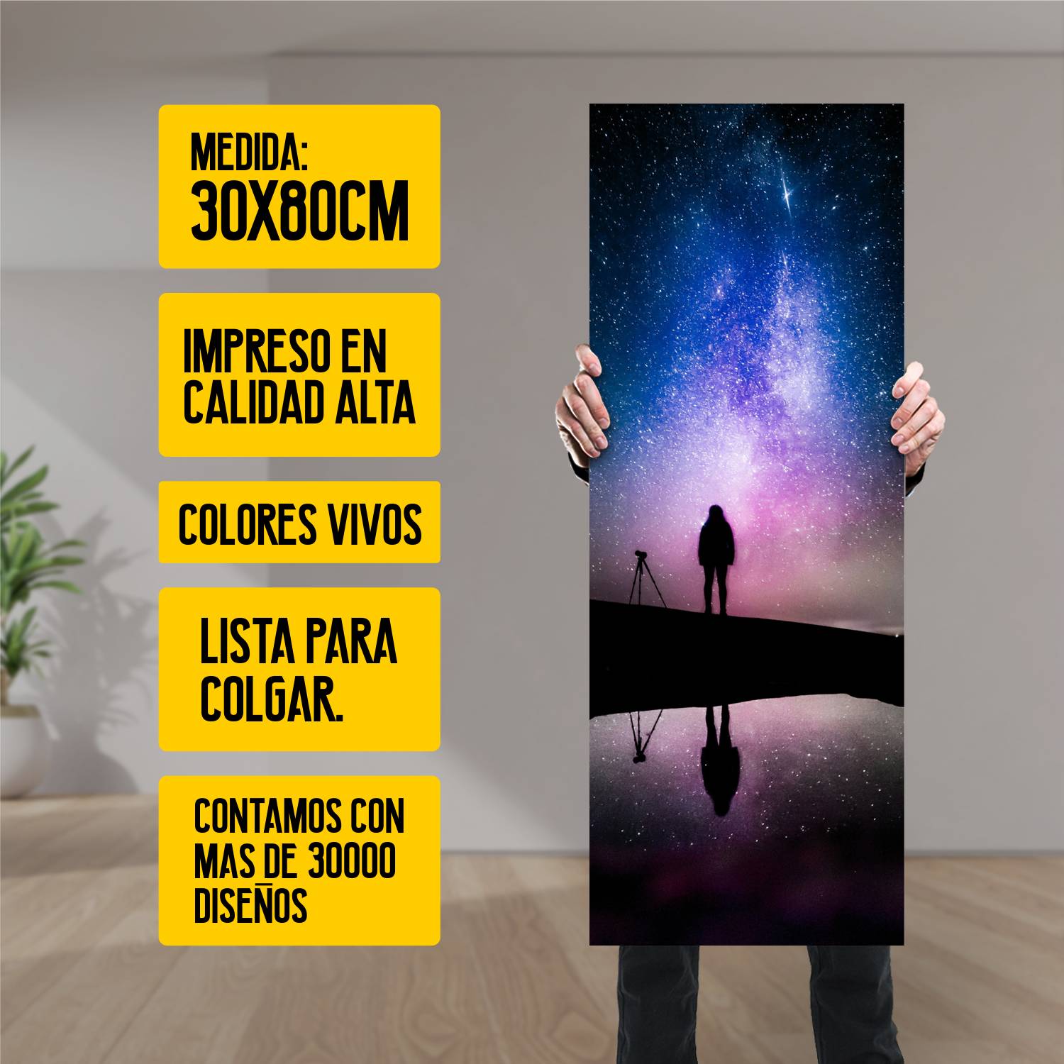 Ya viene listo para colgar, lo que significa que puedes disfrutar de tu nuevo arte en un instante. Con mas de 10 años de experiencia en el sector, ofrecemos productos de alta calidad que transformarán tus ambientes.
