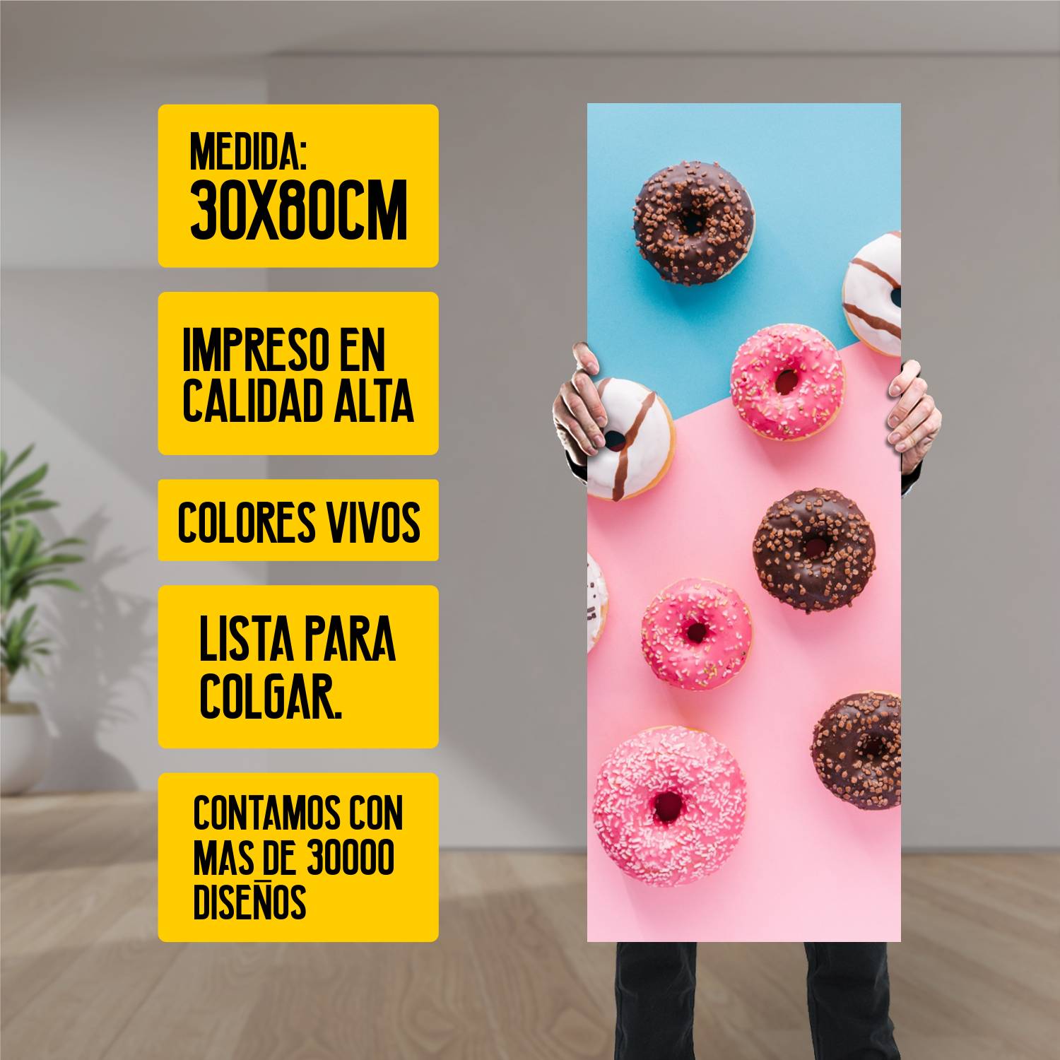 Descubre la elegancia y el estilo con nuestro cuadro impreso en canva full color de 30×80 cm. Este impresionante diseño de Roscas frutilla chocolate es el complemento perfecto para cualquier espacio.