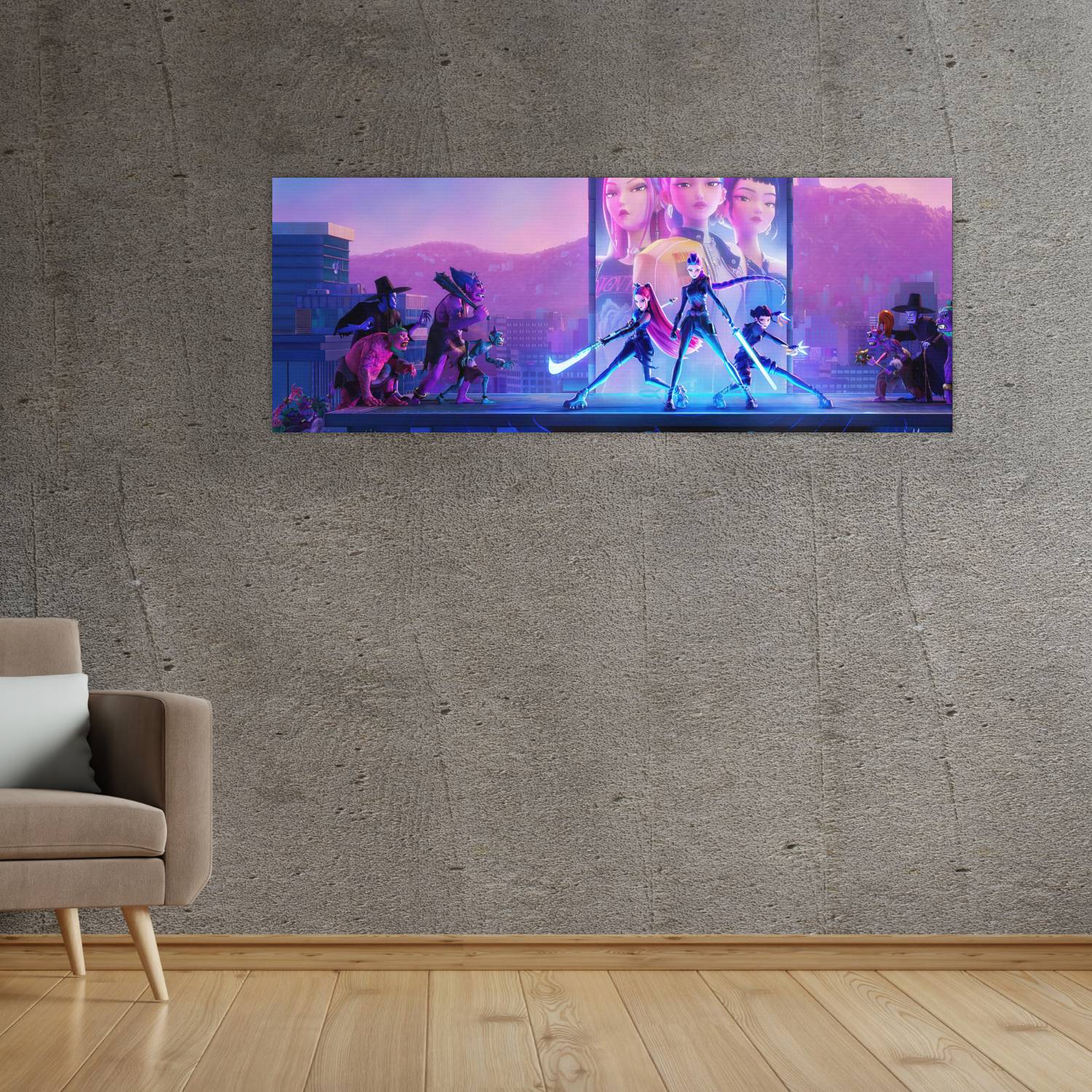 SKU: KPH-004 Categoría: Kpop Demon Hunters Etiqueta: Cuadro grande 30x80cm Rumi Mira Soey KPH-004 Kpop Demon Hunters