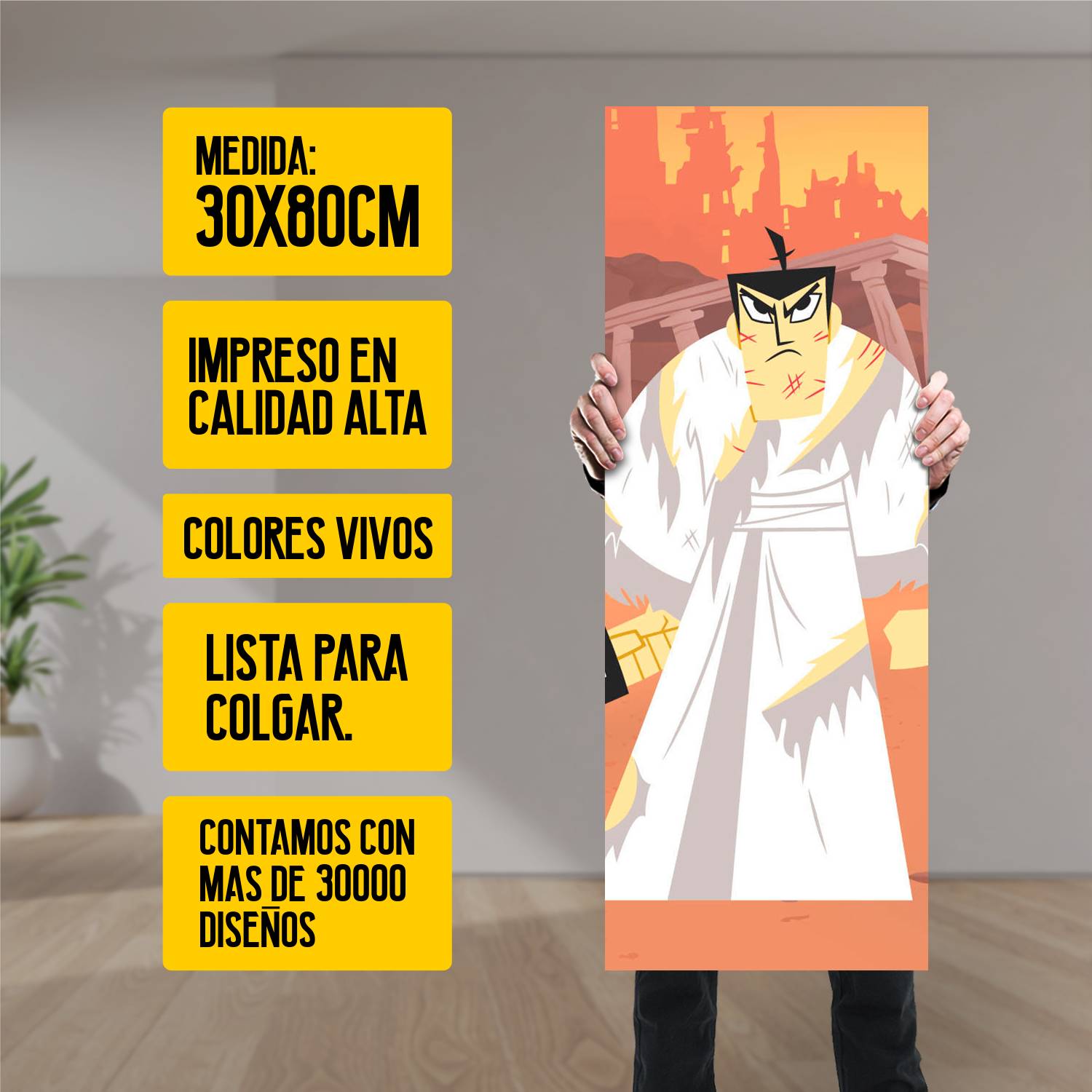 Descubre la elegancia y el estilo con nuestro cuadro impreso en canva full color de 30×80 cm. Este impresionante diseño de Samurai Jack AF199 es el complemento perfecto para cualquier espacio.