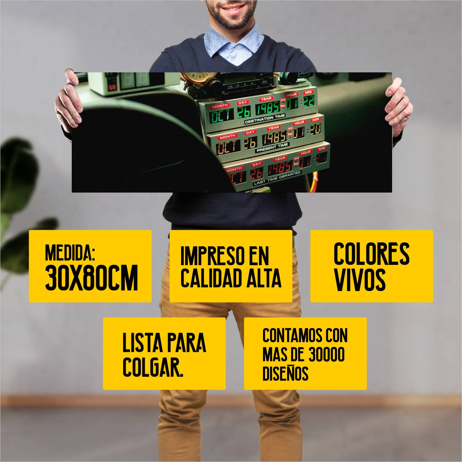 Descubre la elegancia y el estilo con nuestro cuadro impreso en canva full color de 30×80 cm. Este impresionante diseño de Tablero DeLorean es el complemento perfecto para cualquier espacio.