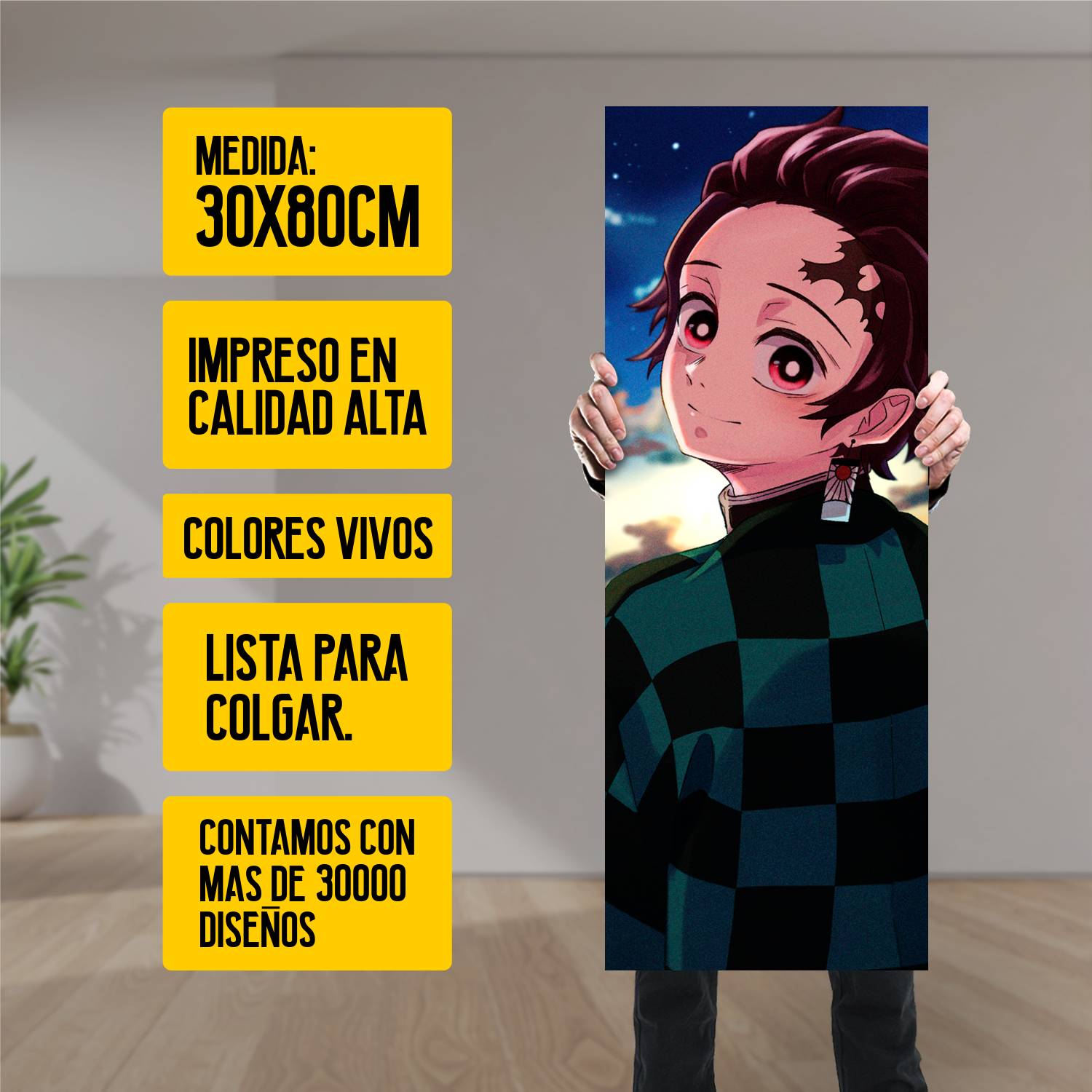 Descubre la elegancia y el estilo con nuestro cuadro impreso en canva full color de 30×80 cm. Este impresionante diseño de Tanjiro Atardecer es el complemento perfecto para cualquier espacio.